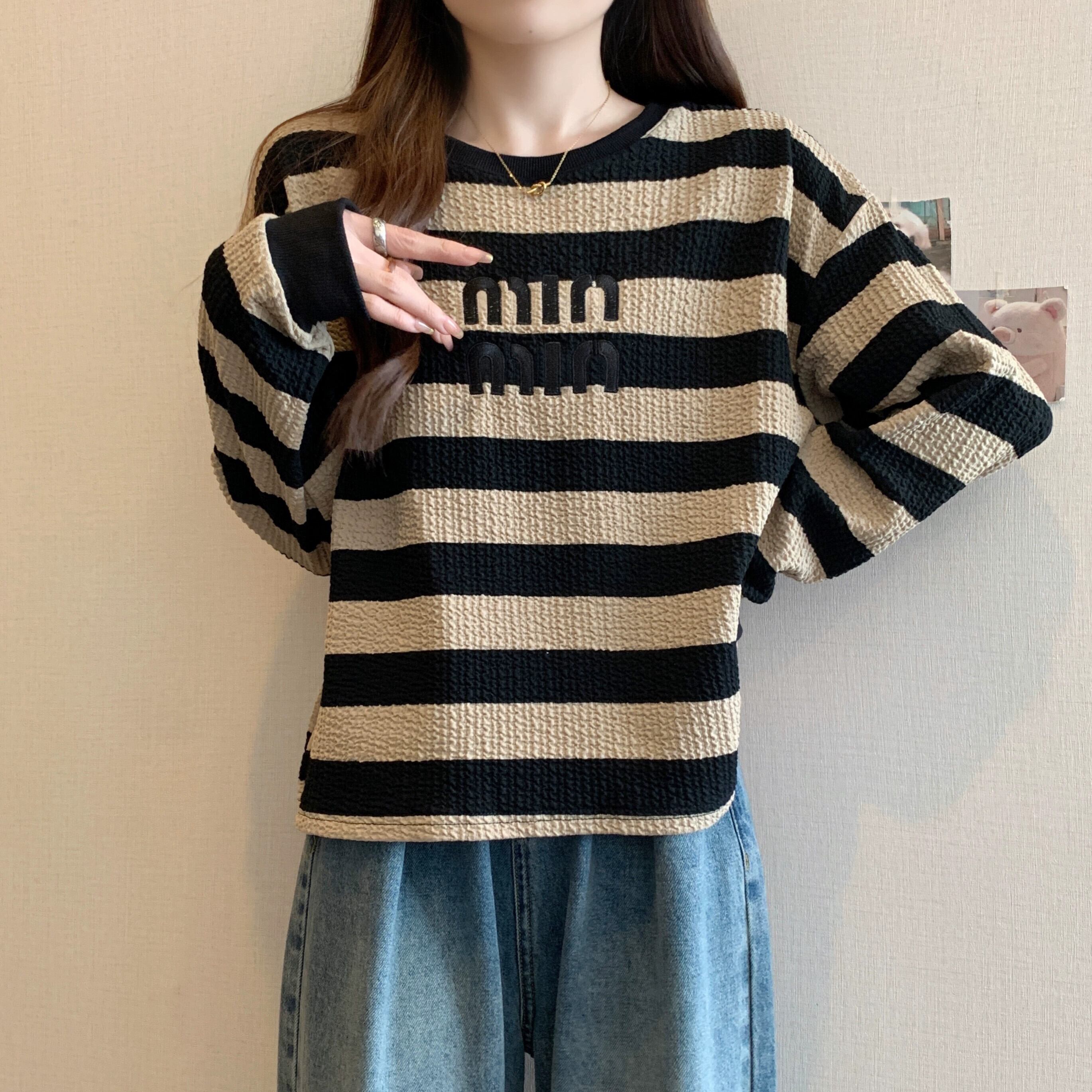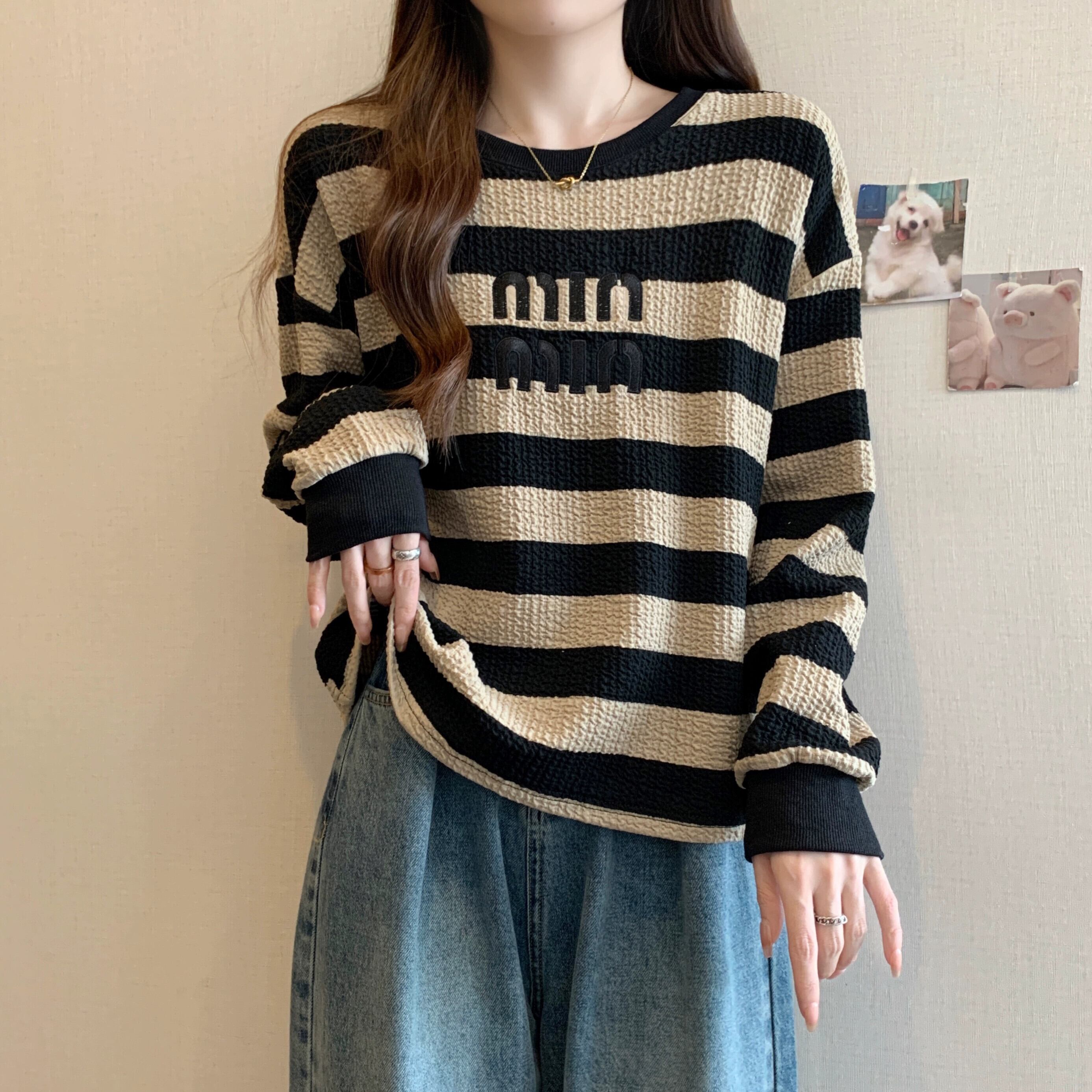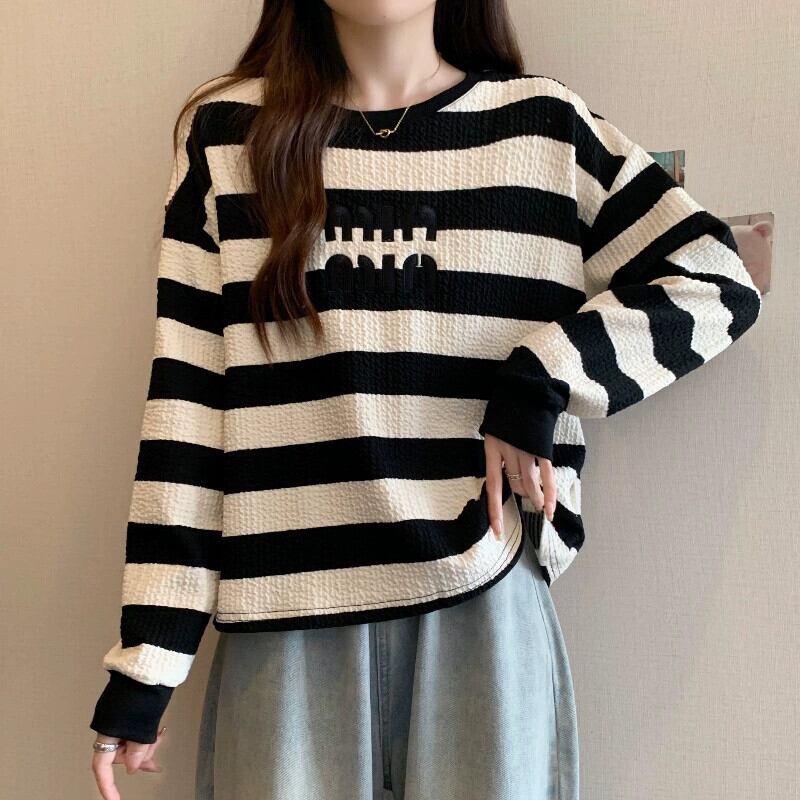大きいサイズの秋冬の新しいスタイルの右肩ストライプスウェットシャツは、今年のファッショナブルで汎用性の高いスリムな長袖トップスがトレンドです ロング 大きめサイズ オータム 秋物 ウィンター 冬物 8884133389677178