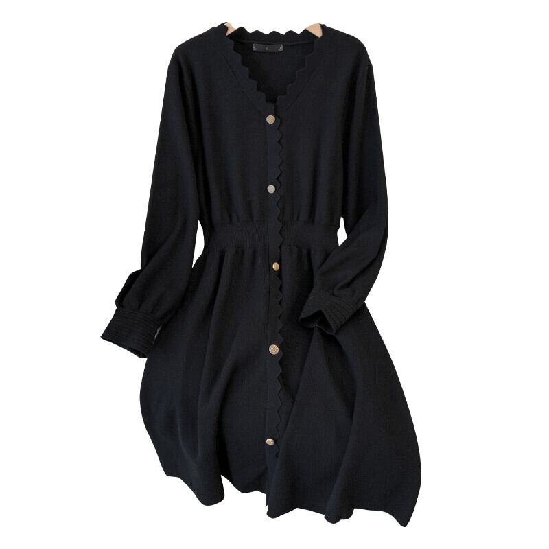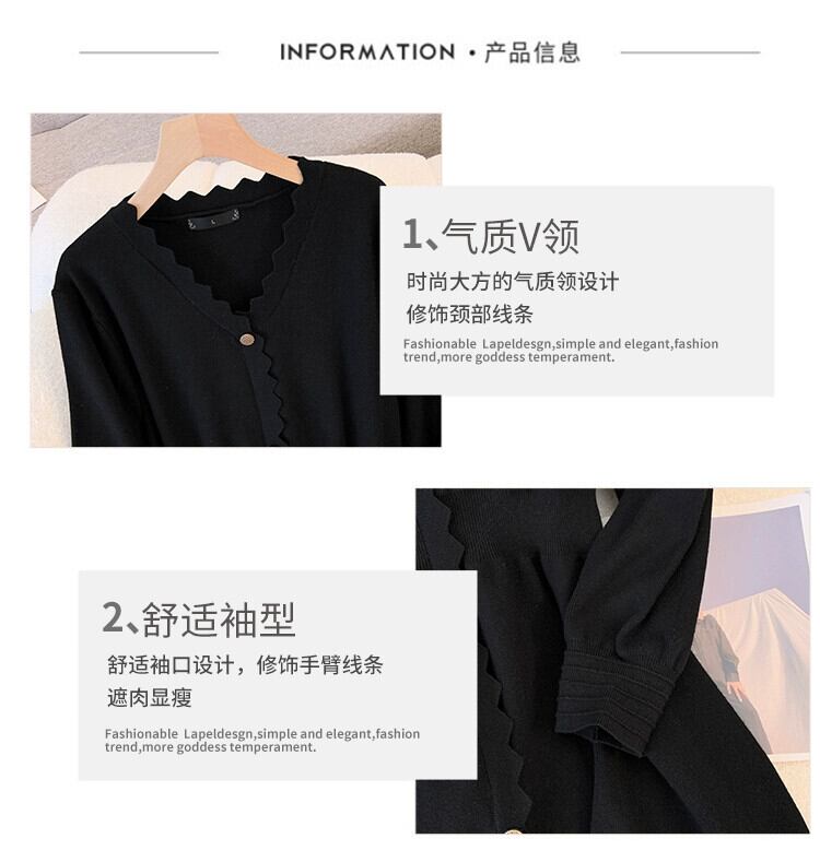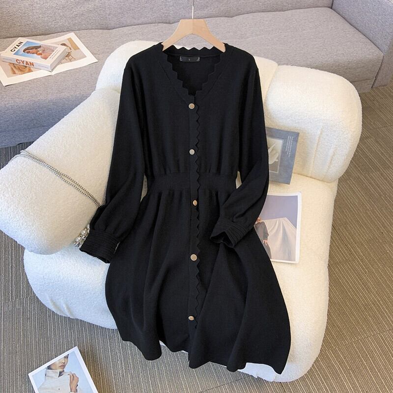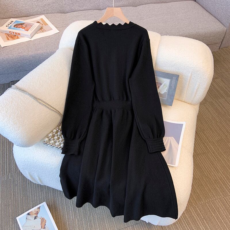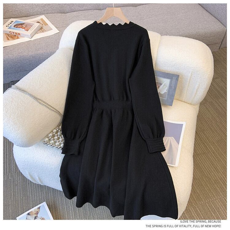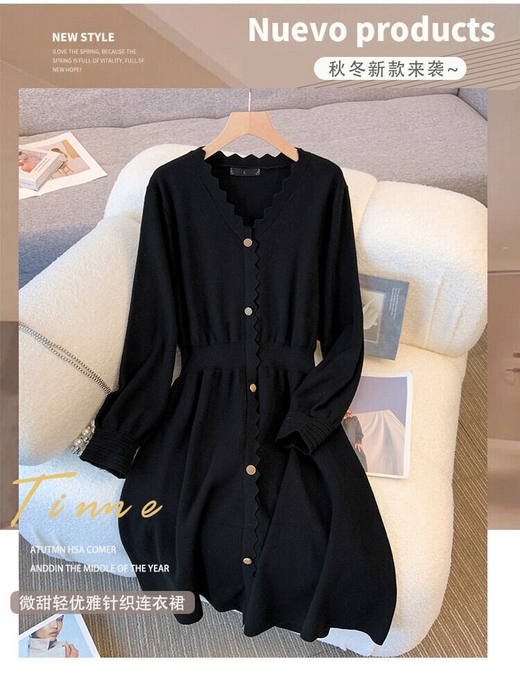 プラスサイズの婦人服 2023 脂肪姉妹秋の新ファッションセーターミッドレングススカート肉をカバーするバージョンと痩身 V ネックドレス 大きめサイズ オータム 秋物 Vネック 8884189546869848