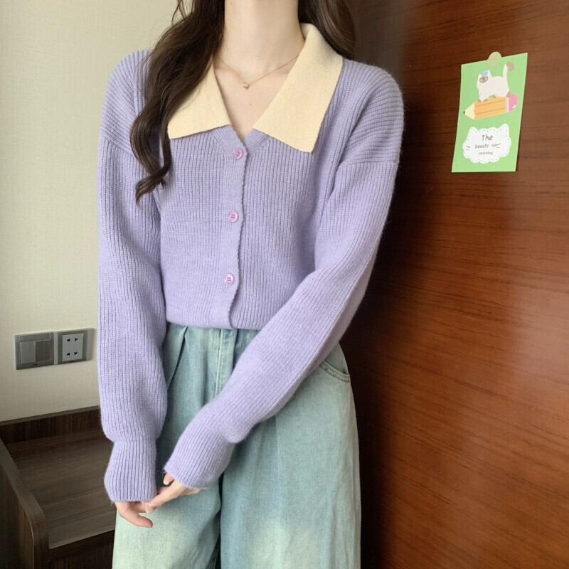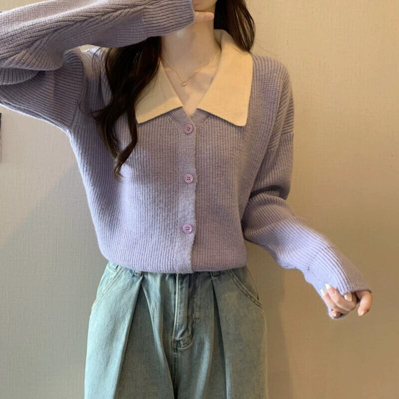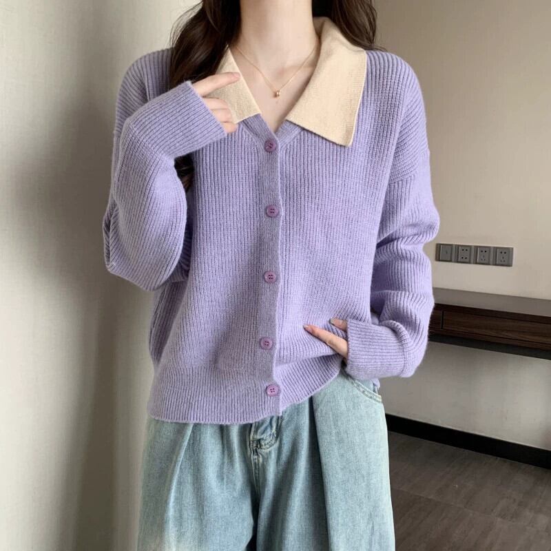 プラスサイズの女性の 2023 秋と冬のスタイルファット MM フレンチラペルパープルセーターカーディガンニットジャケット女性 大きめサイズ オータム 秋物 ウィンター 冬物 8884188392256937