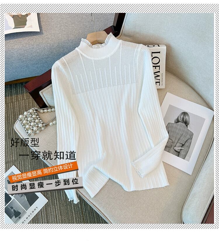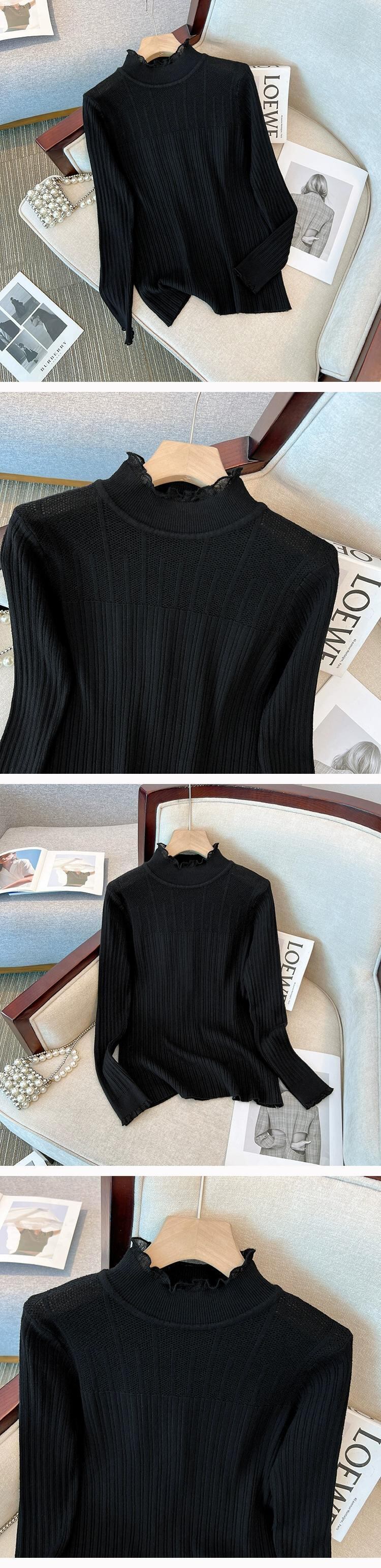 プラスサイズの秋の新無地ハーフタートルネックニットレースボトリングシャツ脂肪MMフランスの気質スリム長袖トップ ロング 大きめサイズ オータム 秋物 ソリッドカラー 8884154890372560