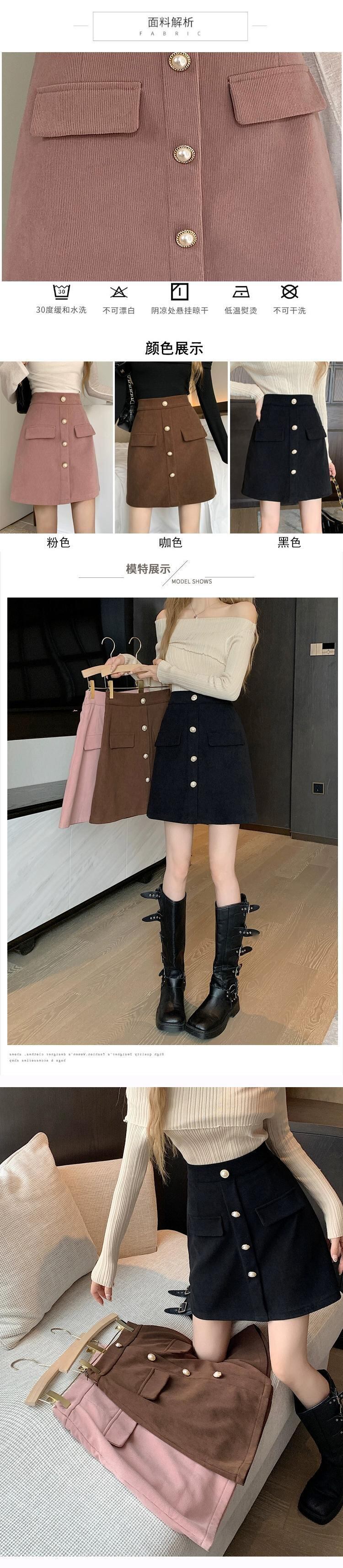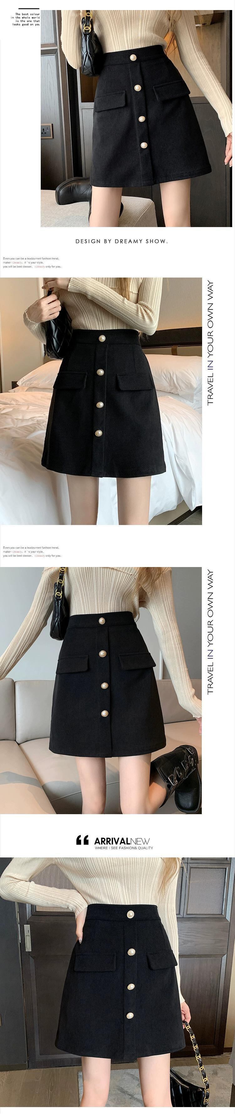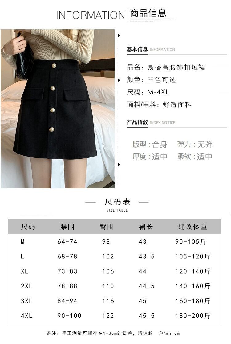 プラスサイズの女性の黒のハイウエスト A ラインスカート 2023 秋と冬の新しい脂肪 mm はお腹をカバーし、お尻をカバーするワンステップショートスカート ブラック 大きめサイズ オータム 秋物 ウィンター 冬物 Aライン 8884153987251731