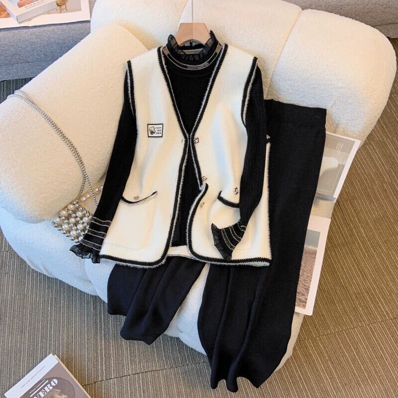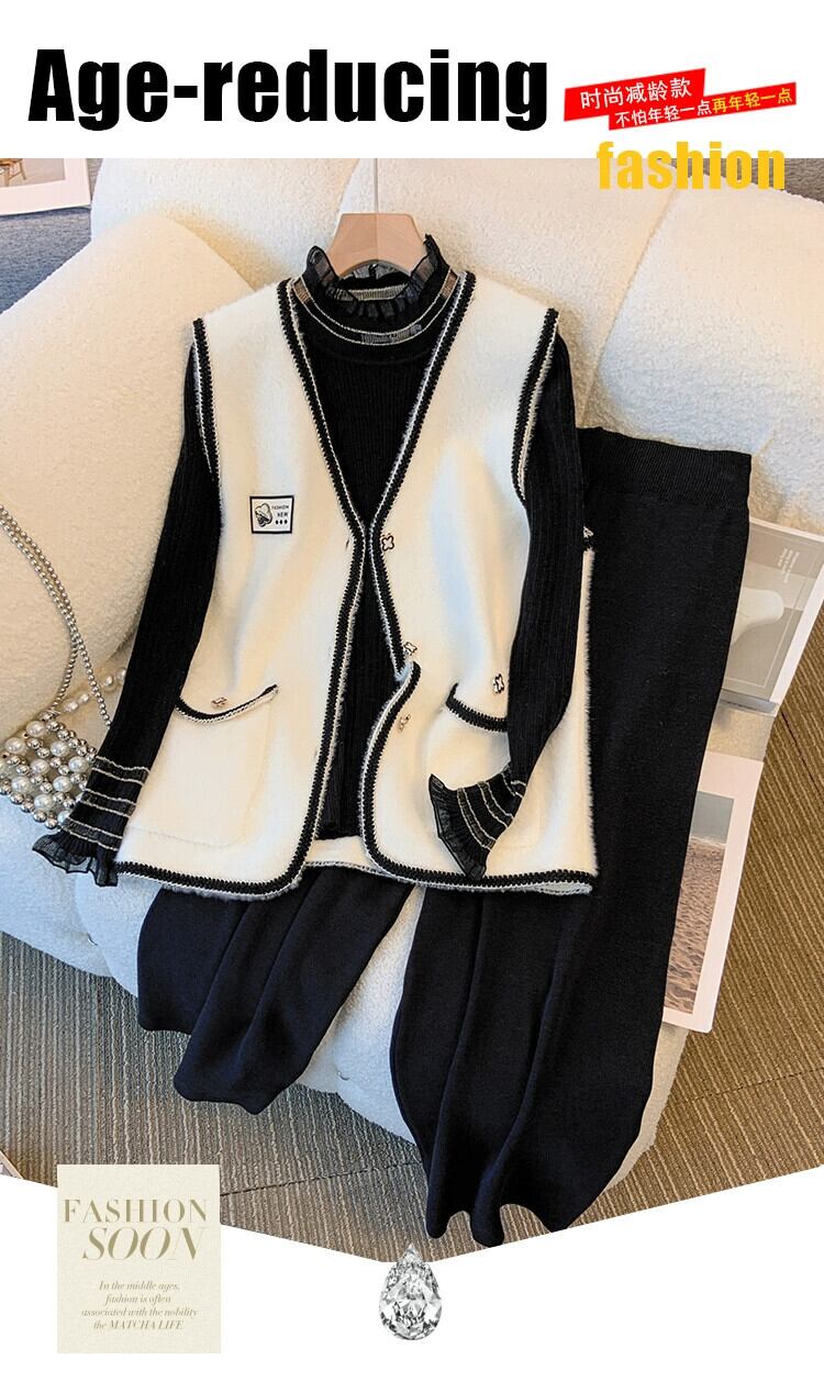 プラスサイズの婦人服ファットmm 2023秋の新ハイエンド老化防止スーツベスト、セーター、カジュアルパンツ3点セット 大きめサイズ オータム 秋物 8884121131920644