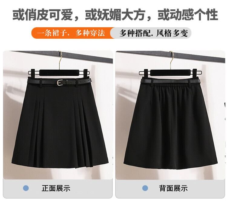 プラスサイズの婦人服 2023 トレンド秋の新脂肪露出防止ハイウエストプリーツスカート痩身底ショートスカート 大きめサイズ オータム 秋物 8884112031699385