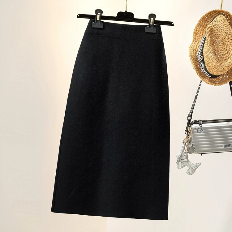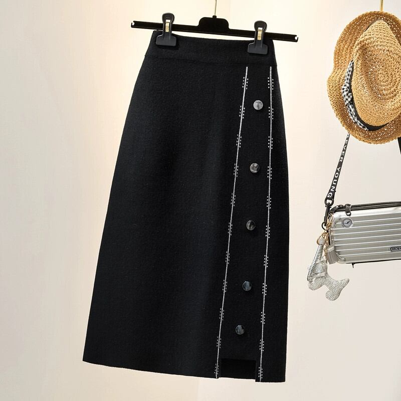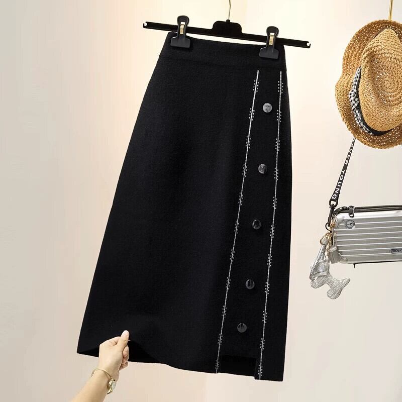 プラスサイズの女性のスカート 2023 新しい秋と冬の新しい痩身シングルブレストニットロングスカート脂肪 大きめサイズ オータム 秋物 ウィンター 冬物 8884194695102489