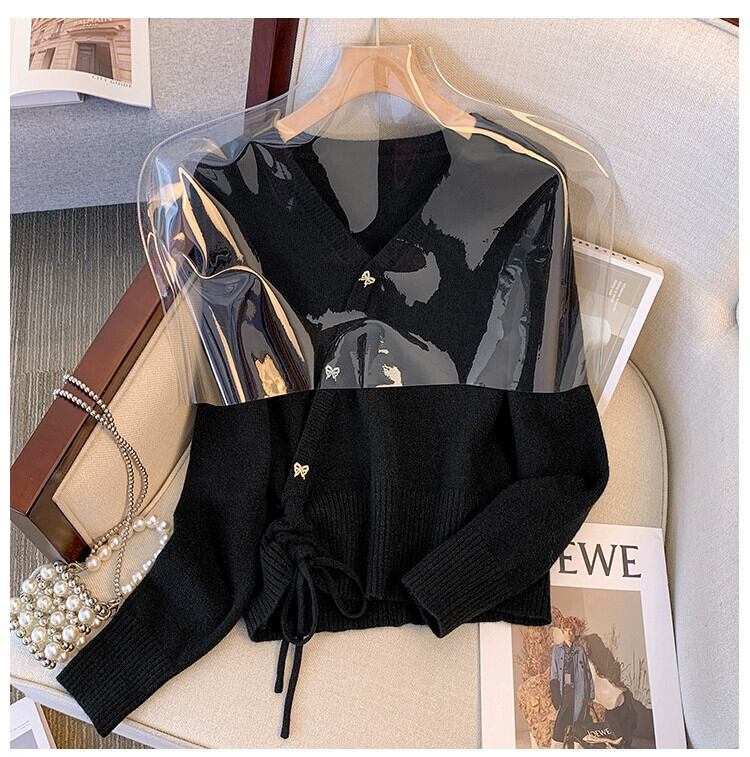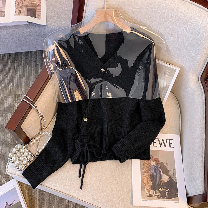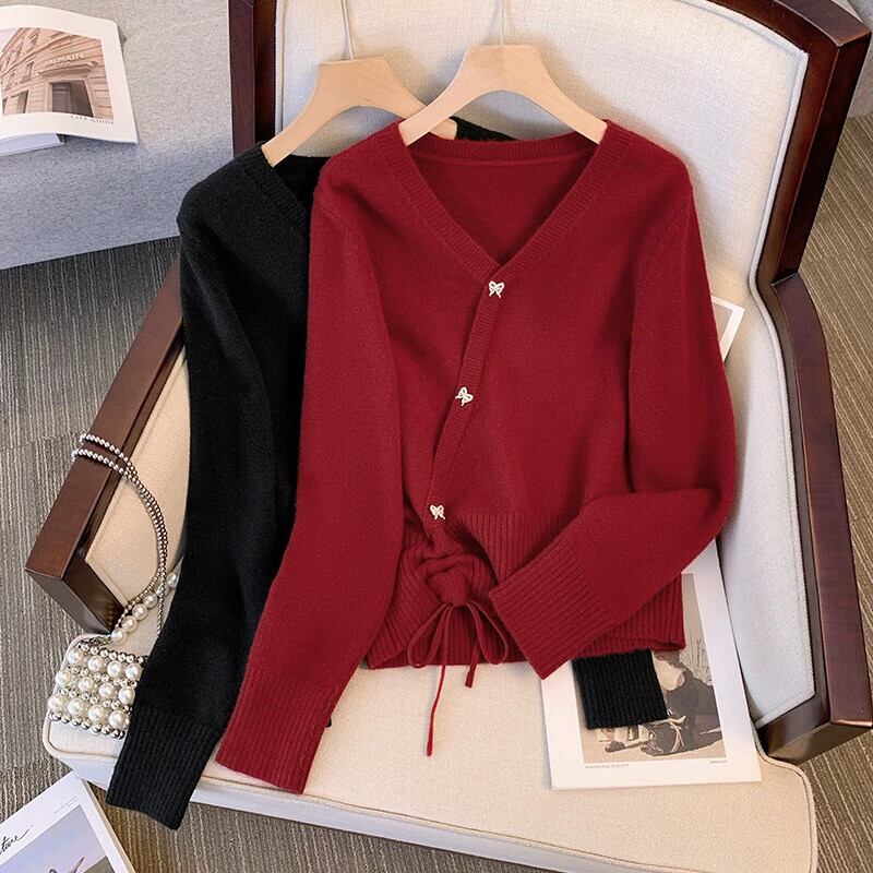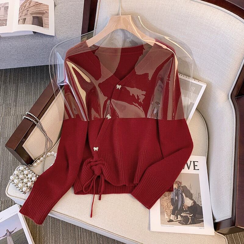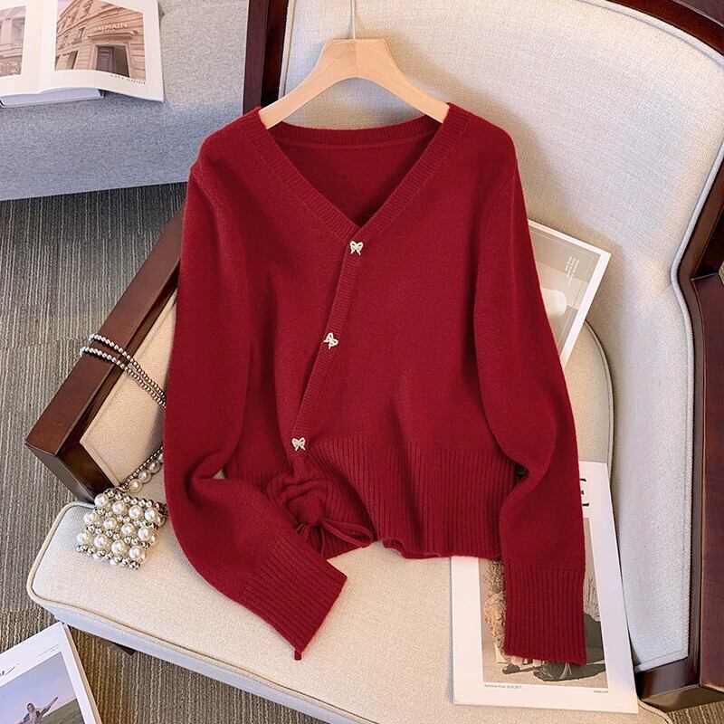 大きいサイズ赤い V ネックセーター長袖女性の秋の新しい脂肪 mm スリミング不規則な巾着底シャツトップ ロング レッド 大きめサイズ オータム 秋物 Vネック 888412451694592