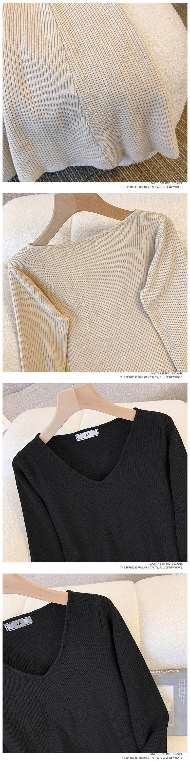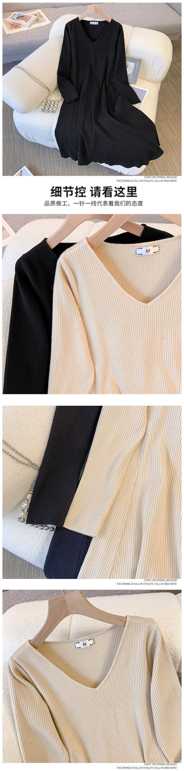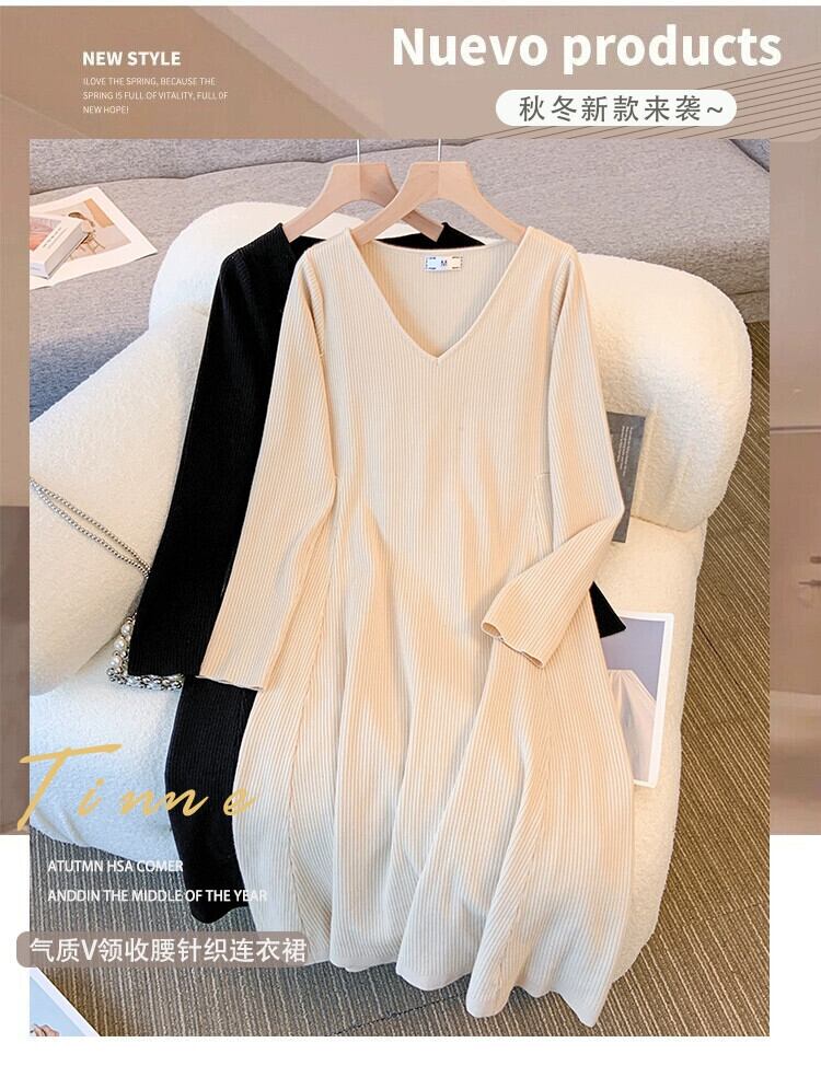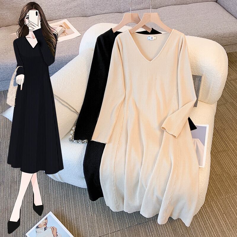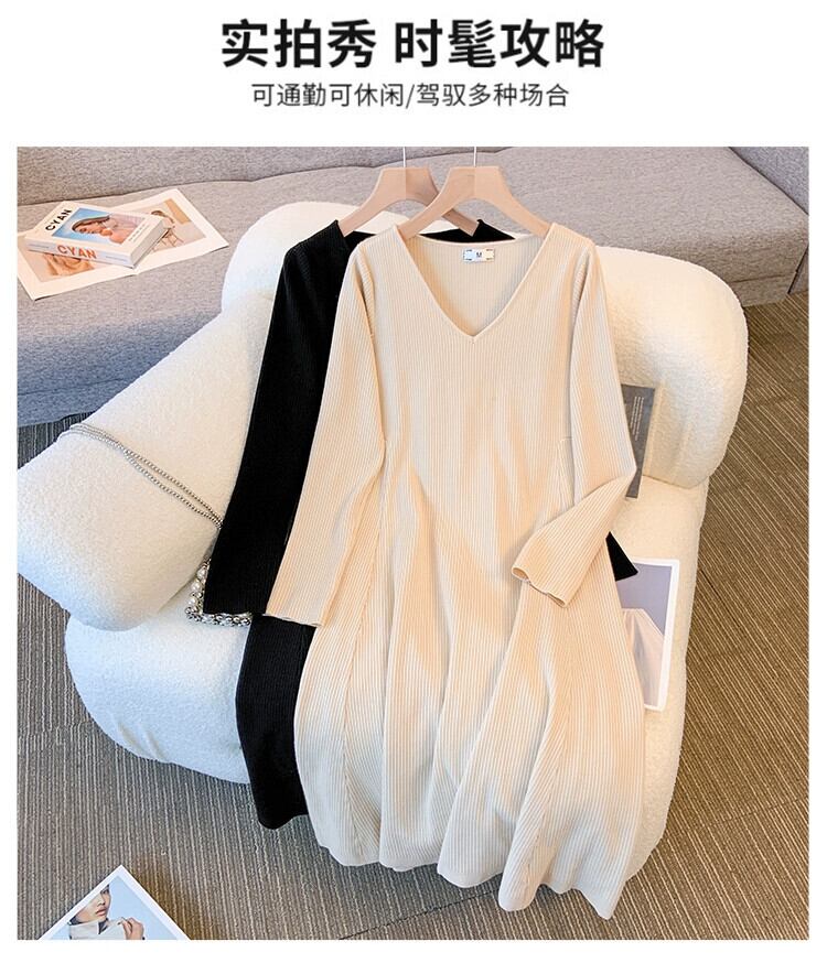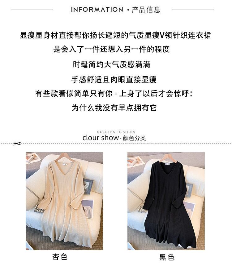 プラスサイズの婦人服 2023 ファットシスター秋と冬の新ファッション多用途セーターロングスカート v ネック肉カバー痩身ドレス 大きめサイズ オータム 秋物 ウィンター 冬物 Vネック 8884154991643387