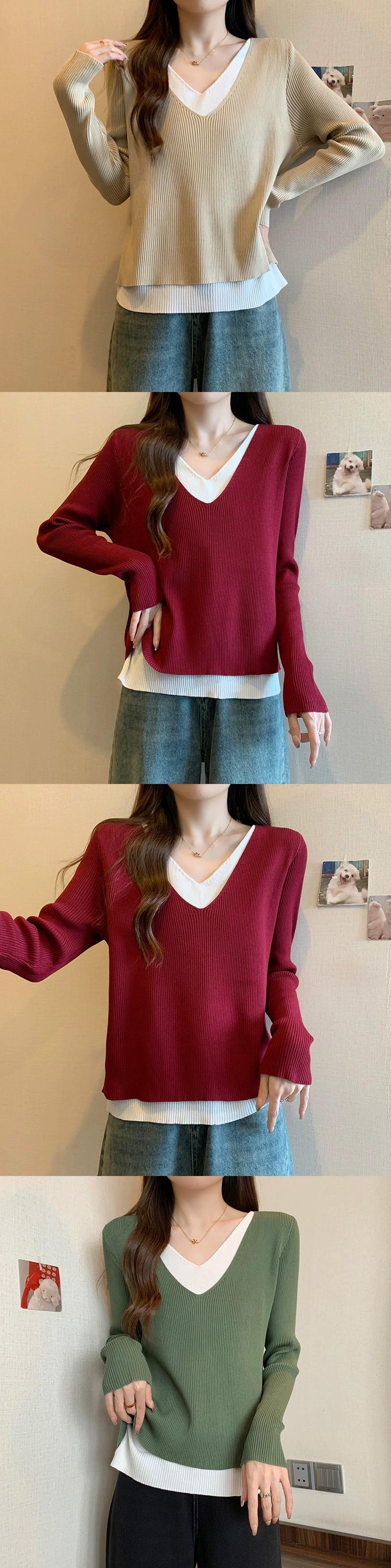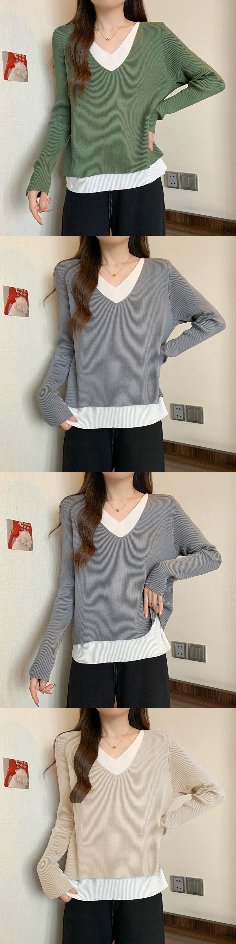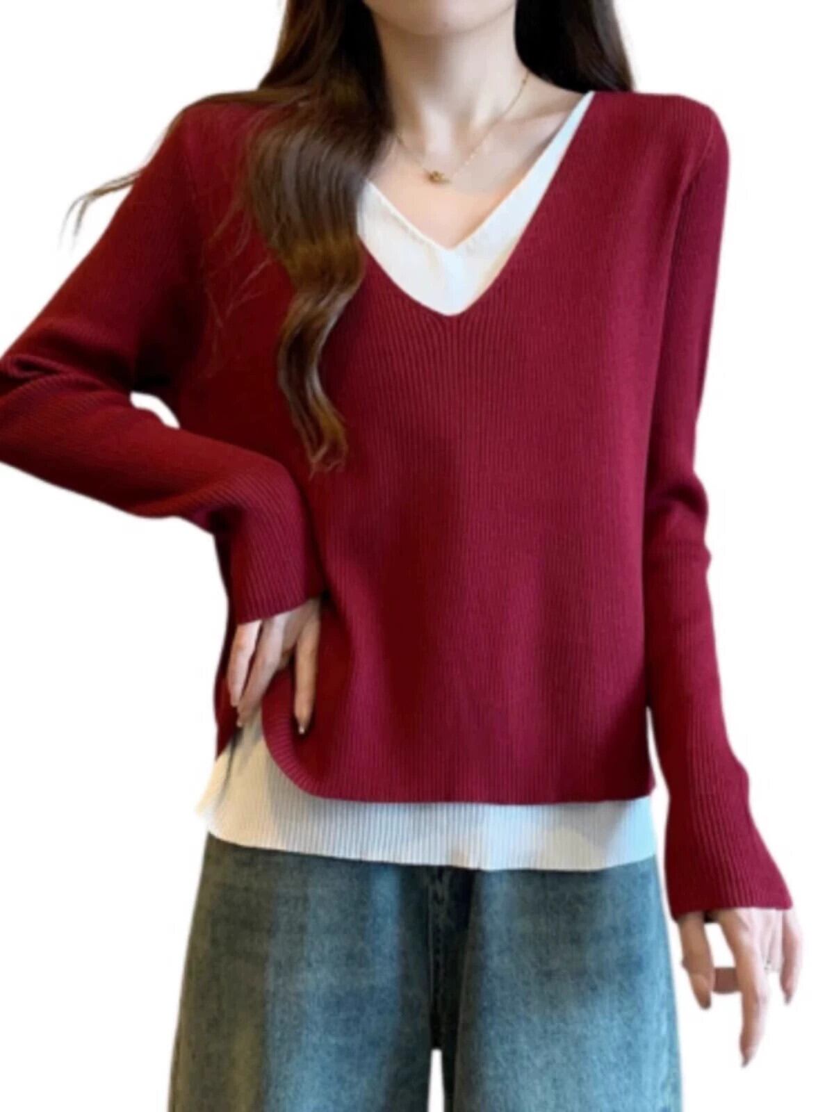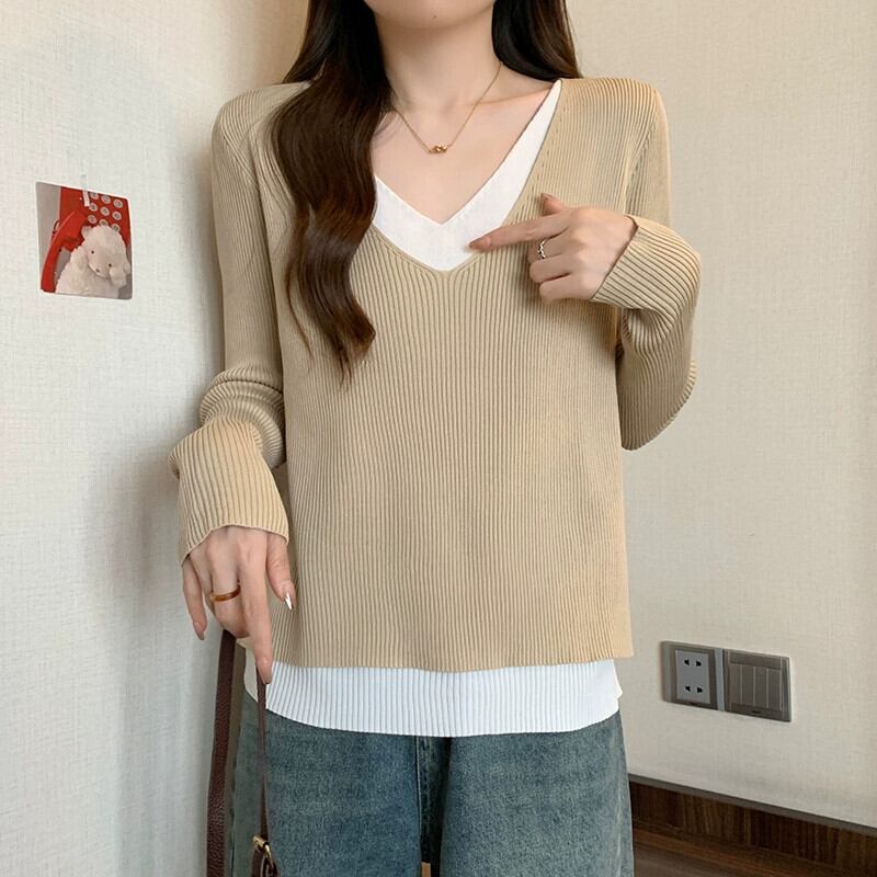 プラスサイズ 2023 秋の新婦人服スプライシング偽ツーピース長袖ニットセーター脂肪ミリメートル多目的デザイントップ ロング 大きめサイズ オータム 秋物 8884176075365459