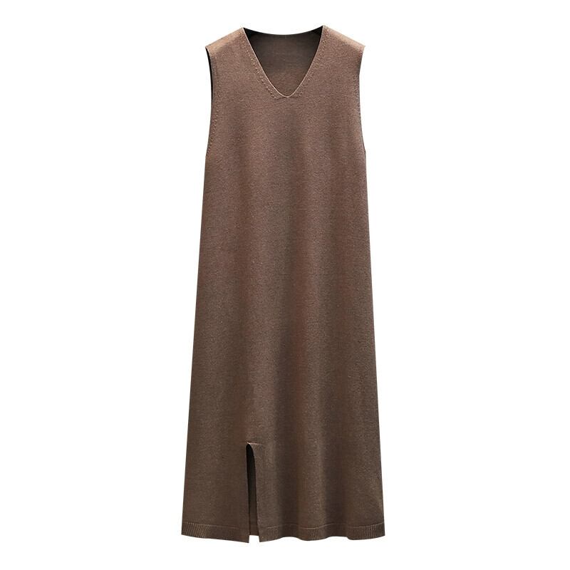 プラスサイズの婦人服 2023 秋冬の新しいスタイルの脂肪はスリムに見え、肉をカバーし、汎用性の高いラウンドネック無地ニットベストドレス 大きめサイズ オータム 秋物 ウィンター 冬物 Oネック ソリッドカラー 8884127922800593