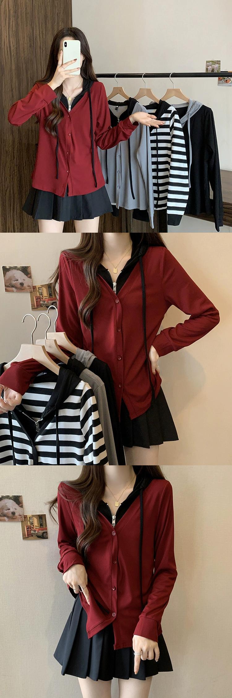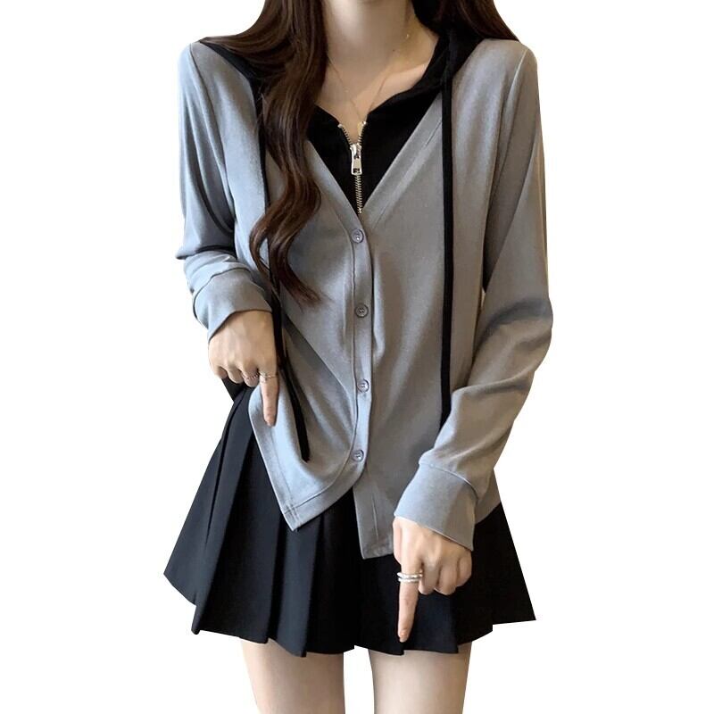 プラスサイズの女性の 2023 秋の新スタイルファット mm フレンチフェイクツーピースデザインハーフオープンカラースウェットシャツ多用途トップトレンディ 大きめサイズ オータム 秋物 8884148890135194
