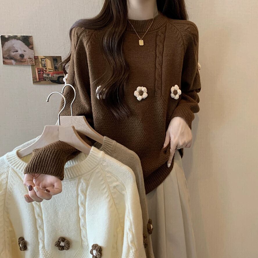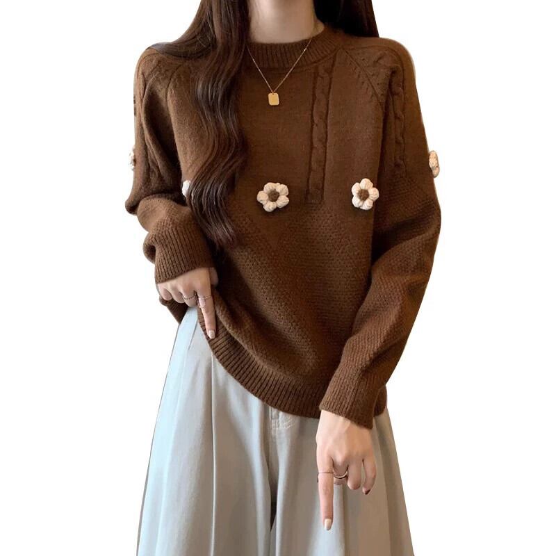 セーター女性プラスサイズ 2023 新しい秋スタイル脂肪ルーズで多用途ラウンドネック長袖ファッショナブルなスリムセーター ロング 大きめサイズ オータム 秋物 Oネック 8884183712235340