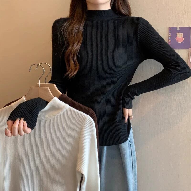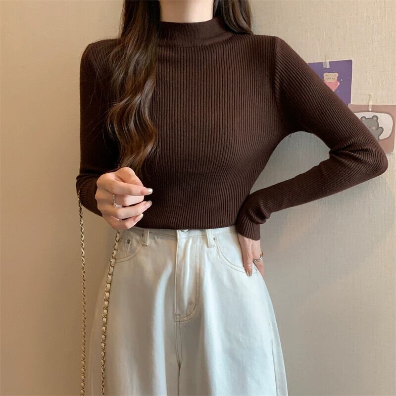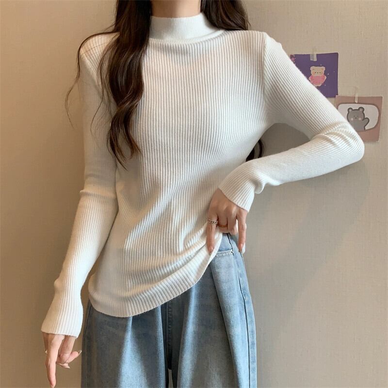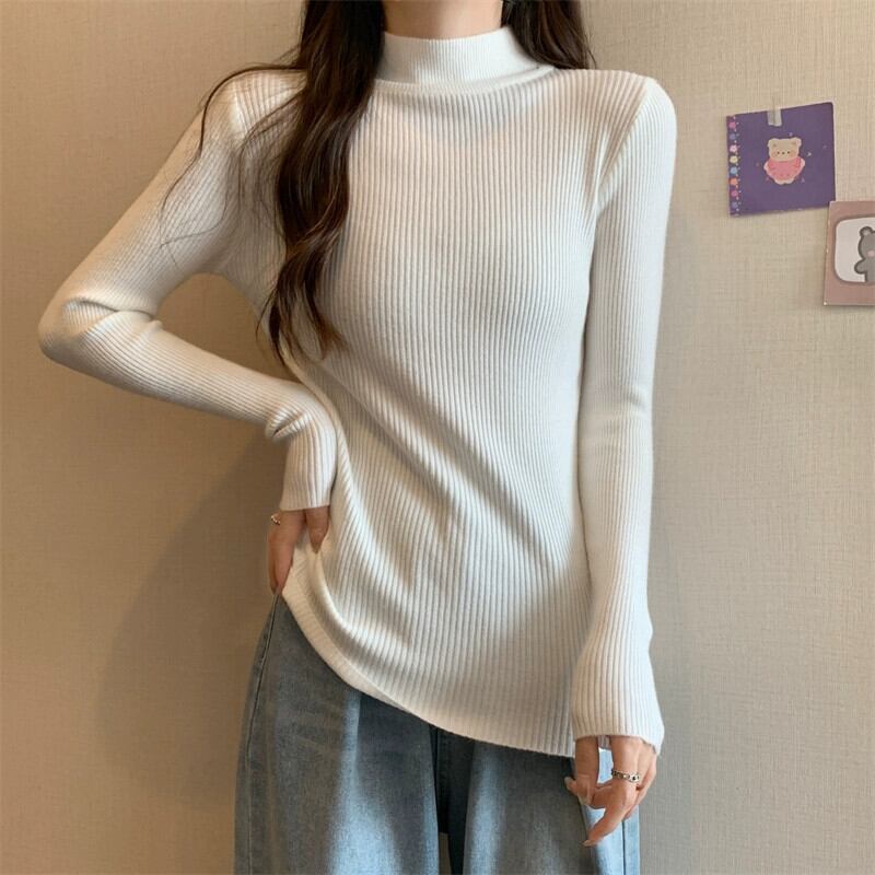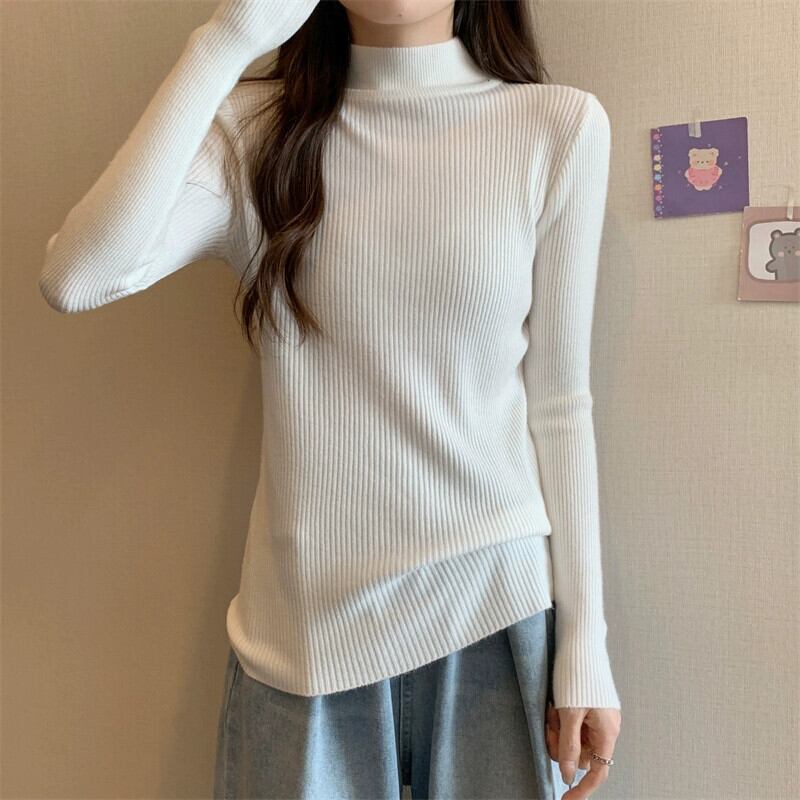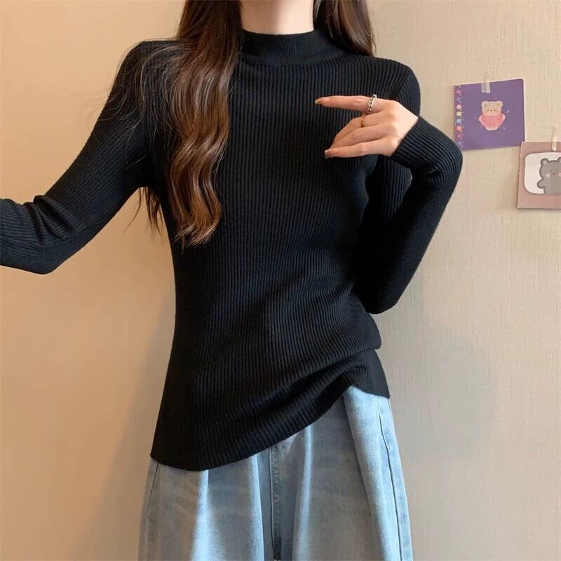 プラスサイズ脂肪ハーフタートルネックセーター秋インナー重ね着 2023 新しいファッションスリム長袖セーター女性 ロング 大きめサイズ オータム 秋物 8884172559767780