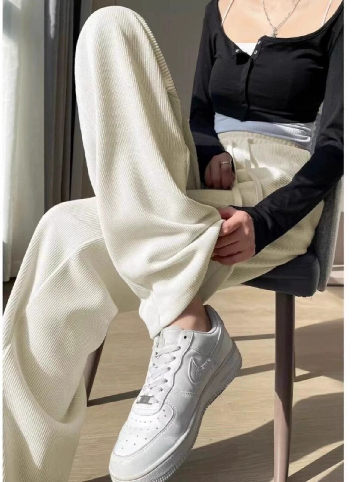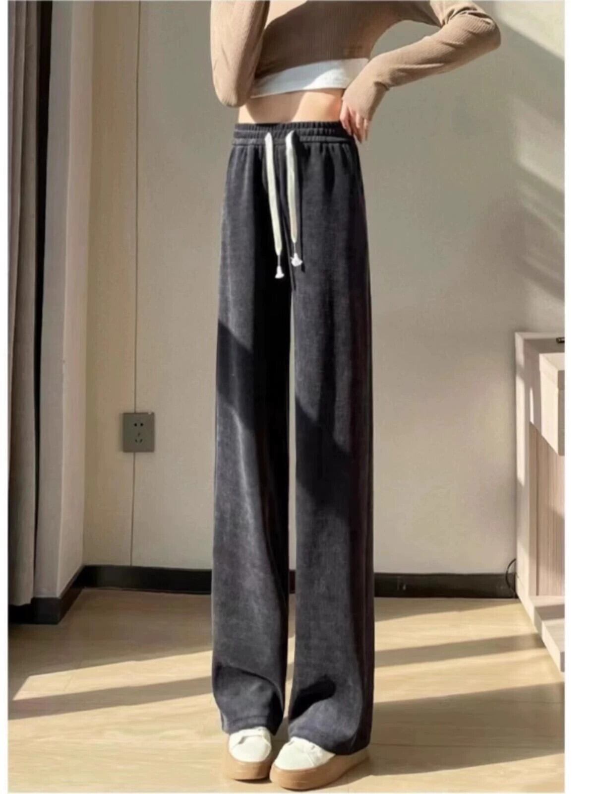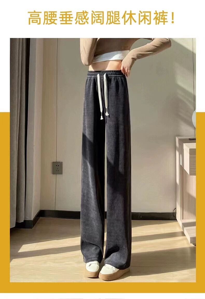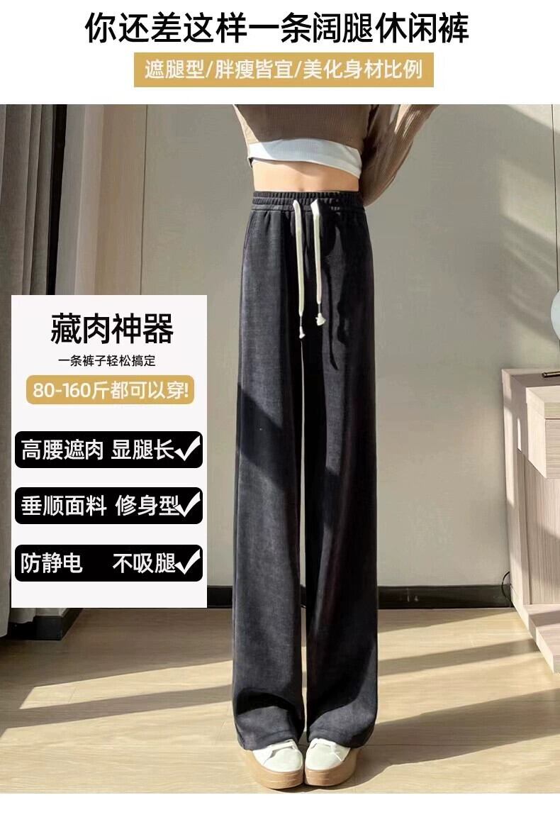 プラスサイズの秋の新しいソリッドカラーのカジュアルパンツ、太ったmmの女性、スリムでルーズで多用途なハイウエストストレートワイドレッグパンツトレンディです 大きめサイズ オータム 秋物 8884178108968053