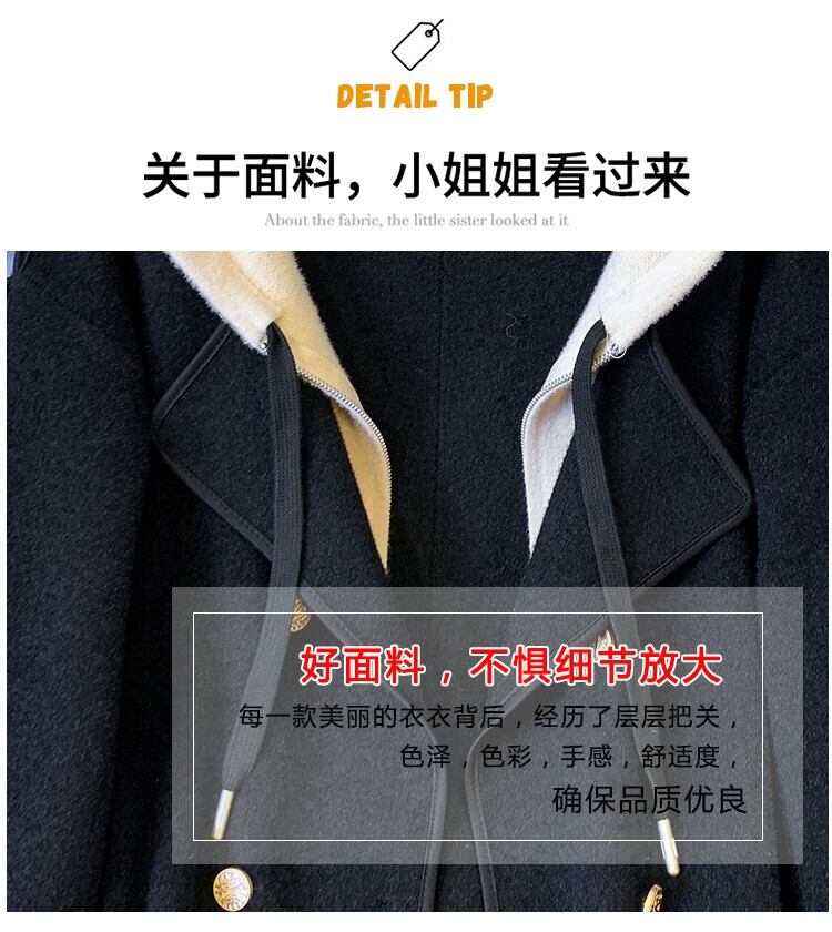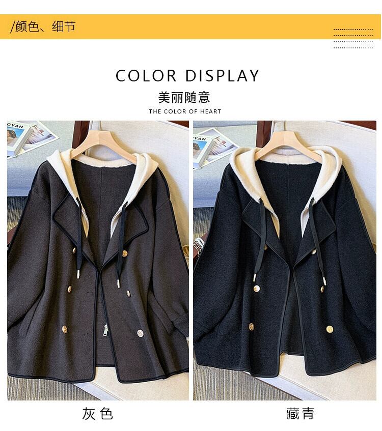 大きいサイズの秋の両面カシミヤフェイクツーピースフード付きウールコート女性脂肪mm気質とスリムカーディガンウールコート 大きめサイズ オータム 秋物 8884154409140198