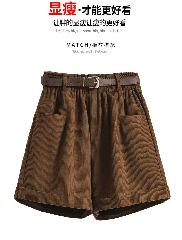 プラスサイズの女性の脂肪 mm 秋冬の新スタイル 2023 痩身と年齢軽減カジュアルで多用途な eign スタイルのお腹カバー コーデュロイ ショーツ 大きめサイズ オータム 秋物 ウィンター 冬物 ブルマー 8884137606124470
