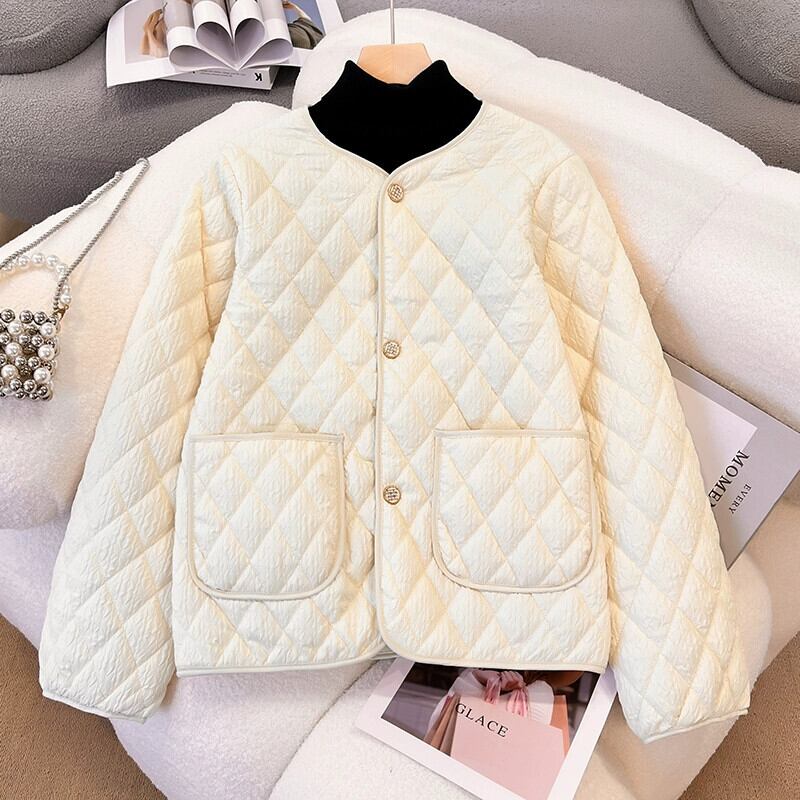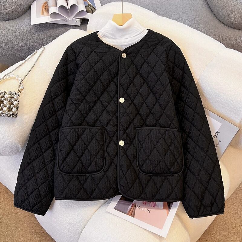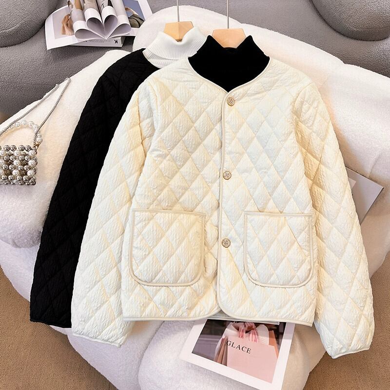 大きいサイズ菱形ノーカラーコットンコート女性の新しい冬 2023 女性の脂肪姉妹ルーズダウンコットンコートトレンディな 大きめサイズ ウィンター 冬物 8884184818697476