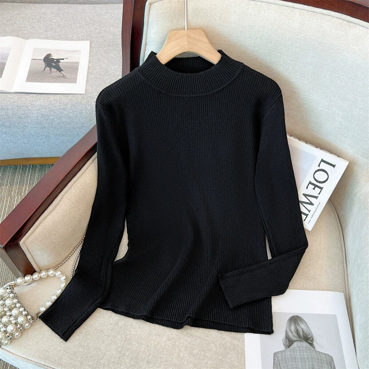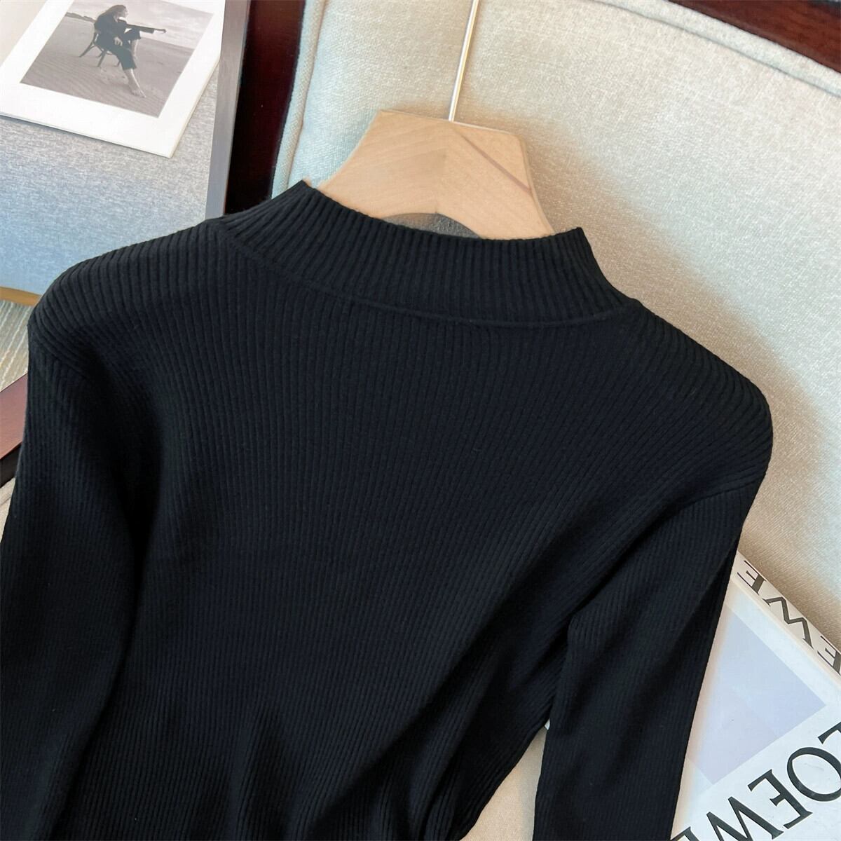 プラスサイズの婦人服 2023 秋と冬の新しいスリムで多用途カジュアルソリッドカラーボトリングシャツ長袖ハーフタートルネックシルクコットンシャツ ロング 大きめサイズ オータム 秋物 ウィンター 冬物 8884146601357505