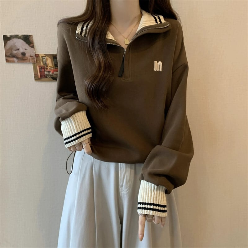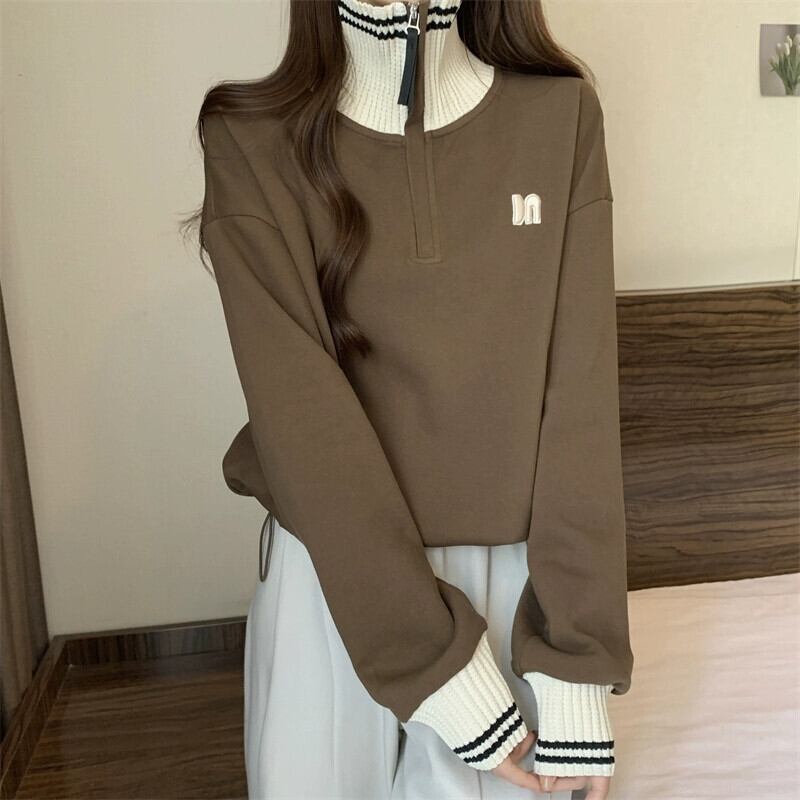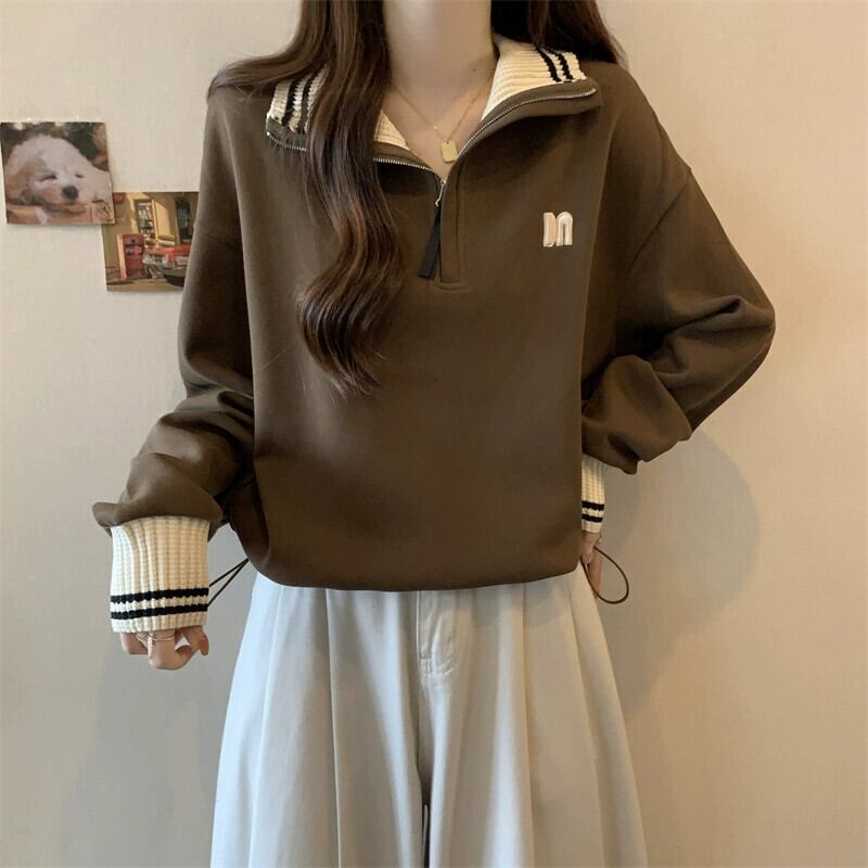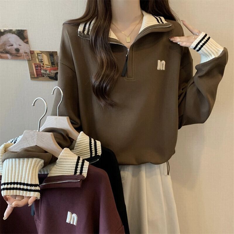 プラスサイズの秋の新ソリッドカラーハーフジップメイラードラペルスウェットシャツ女性ファットmmスリム右肩長袖トップトレンディ ロング 大きめサイズ オータム 秋物 8884188490930268