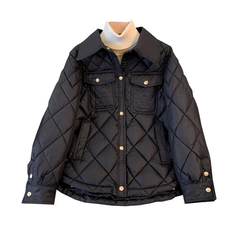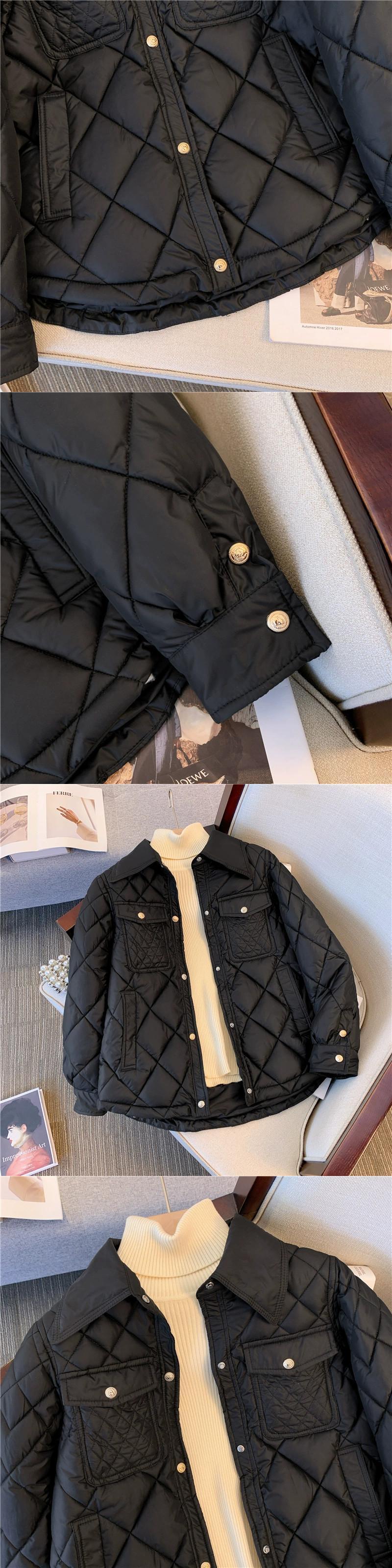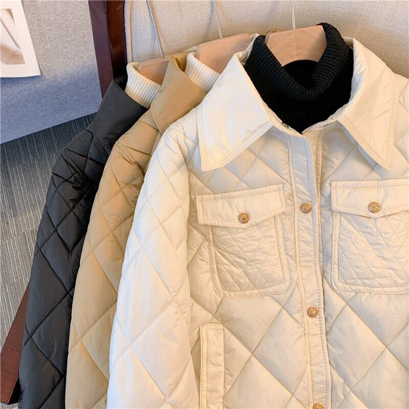 大きいサイズ菱形コットンコート女性 2023 新しい冬のハイエンドポロカラーカーディガン長袖コットンジャケットジャケットトップ ロング 大きめサイズ ウィンター 冬物 8884197983769848
