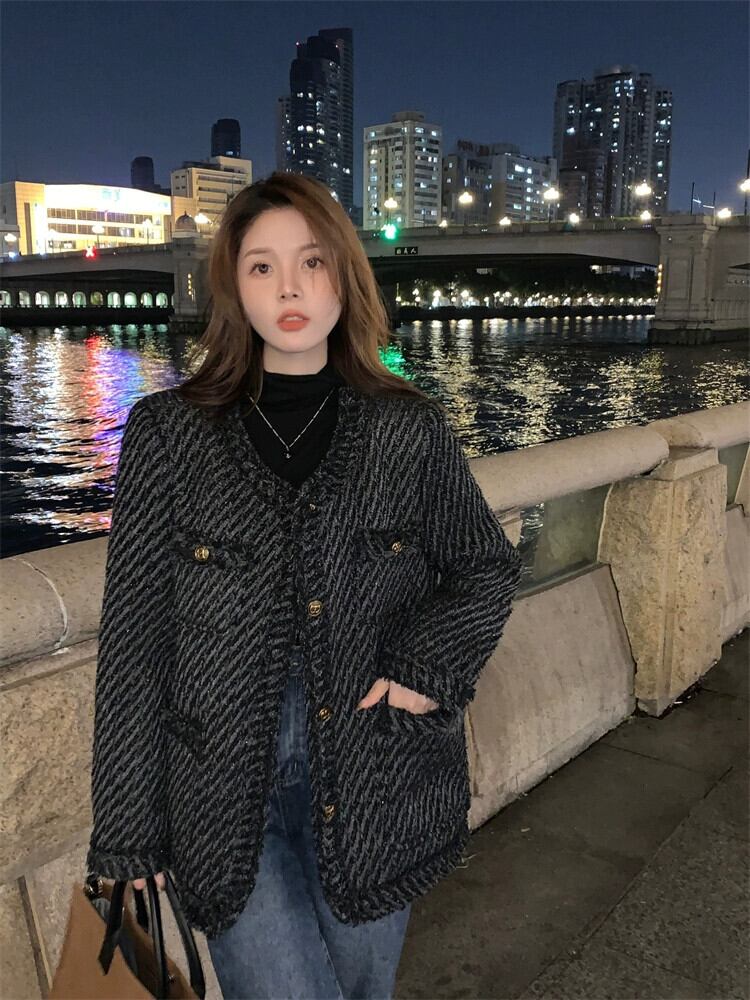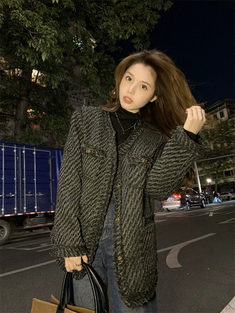 ウールコート秋と冬の新しい気質ハイエンド 2023 秋黒スタイル春と秋の小さな香りトップス女性の冬 ブラック スプリング 春物 オータム 秋物 ウィンター 冬物 8884120430614306