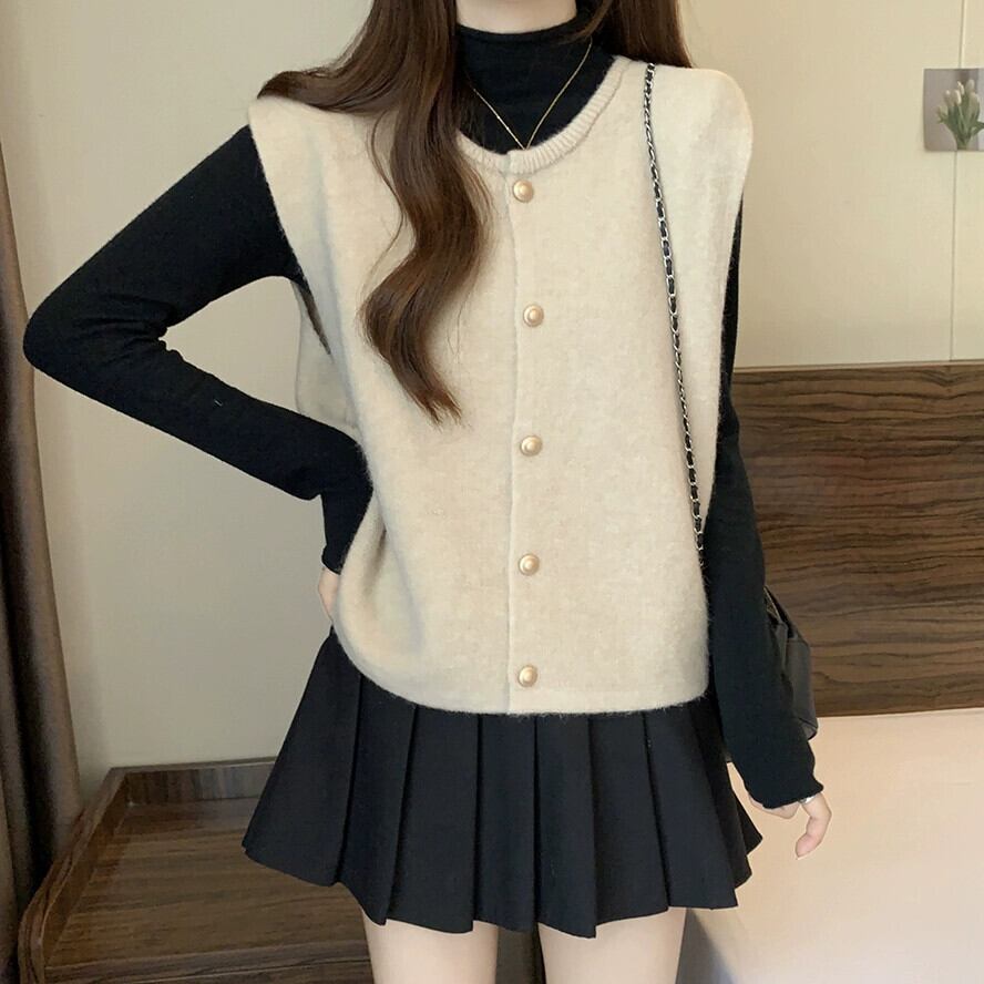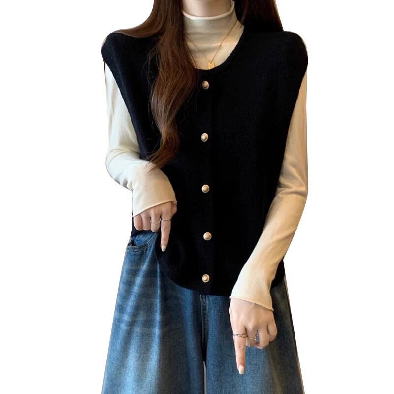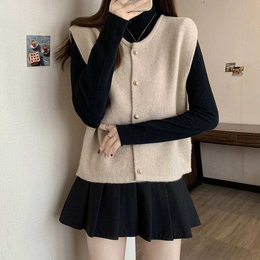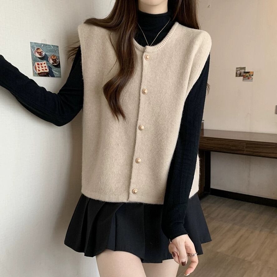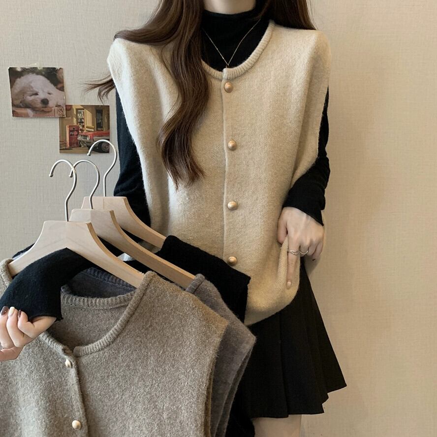 ニットセーター女性の大きいサイズ 2023 秋と冬スタイルファットシスターシングルブレストノースリーブ無地ルーズベストベスト 大きめサイズ オータム 秋物 ウィンター 冬物 ソリッドカラー 8884170529681485