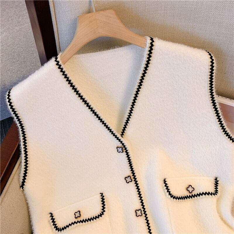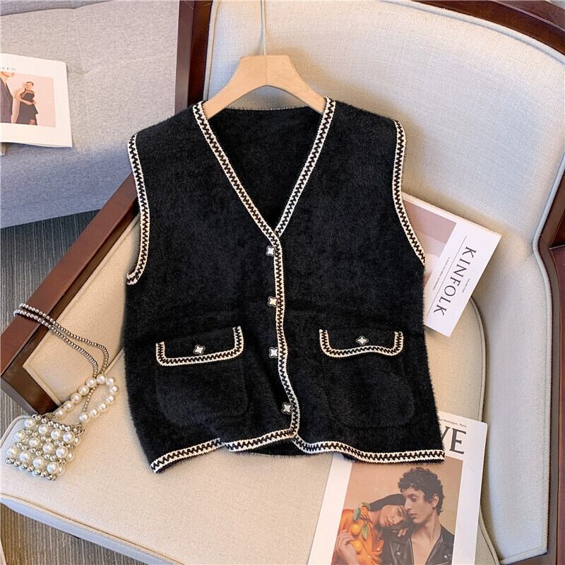 プラスサイズの女性の 2023 秋と冬の新しいスタイルのニットベストベスト女性わずかに脂肪 mm フレンチ V ネックノースリーブトップ 大きめサイズ オータム 秋物 ウィンター 冬物 Vネック 8884114133564917