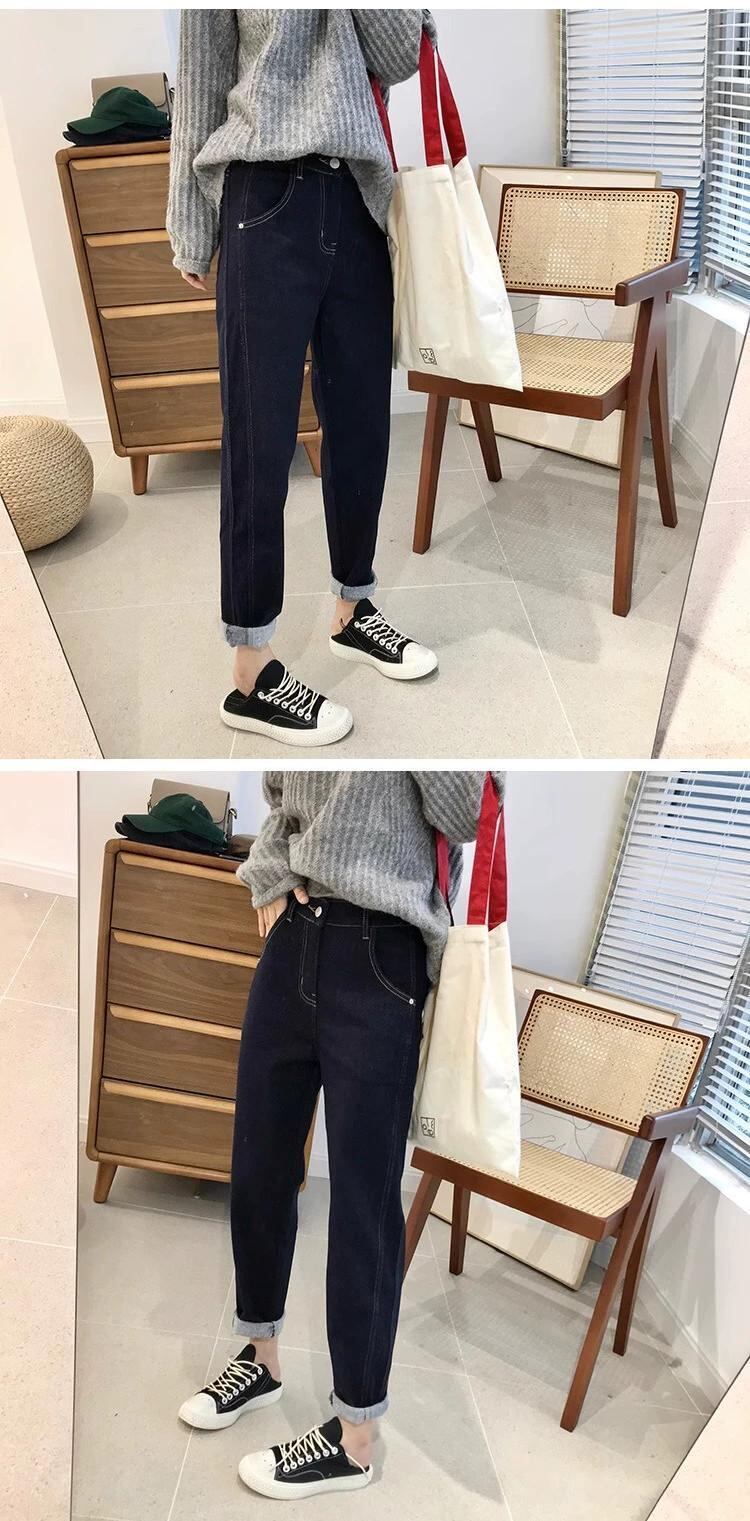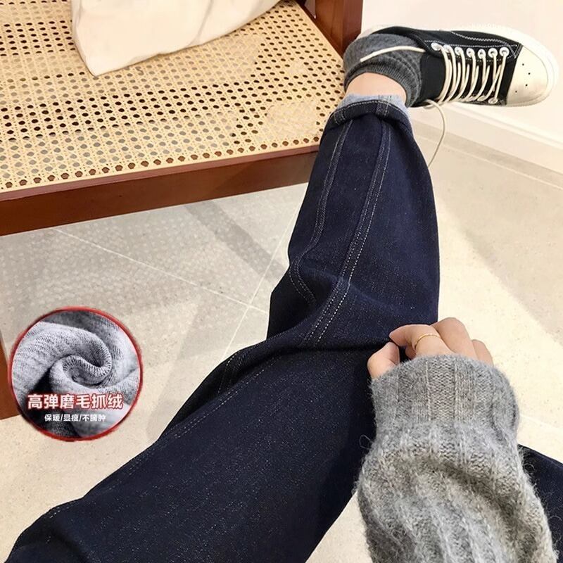 プラスサイズの女性の秋と冬の新しいフリースハーレムジーンズファットmm洋梨型ボディが肉を覆い、スリムな9ポイントシガレットパンツ 大きめサイズ オータム 秋物 ウィンター 冬物 8884151870343634