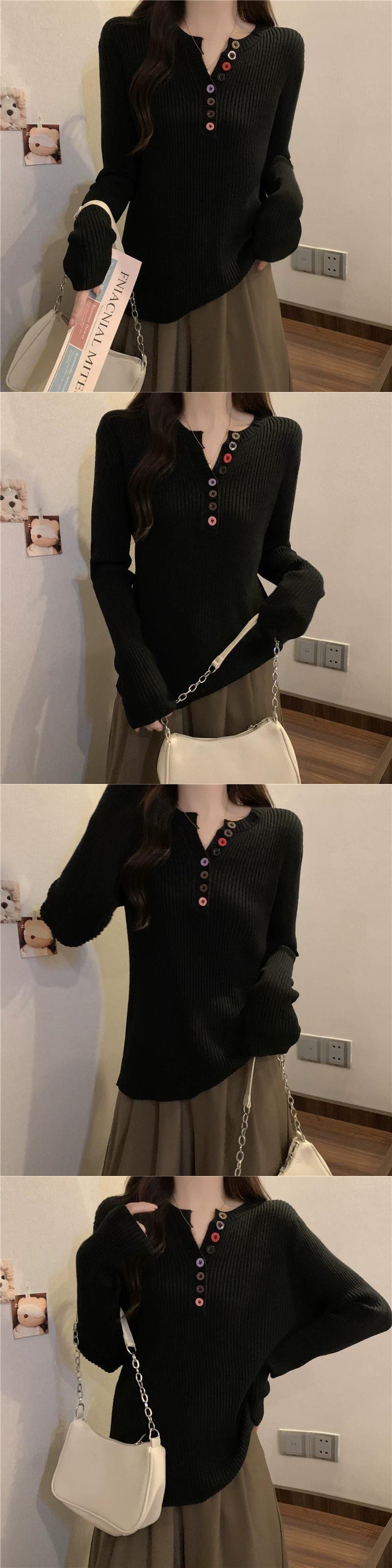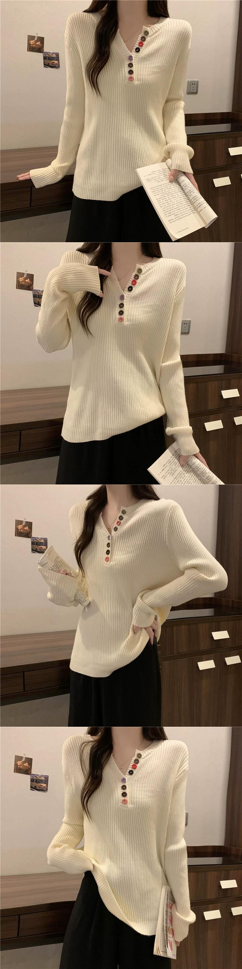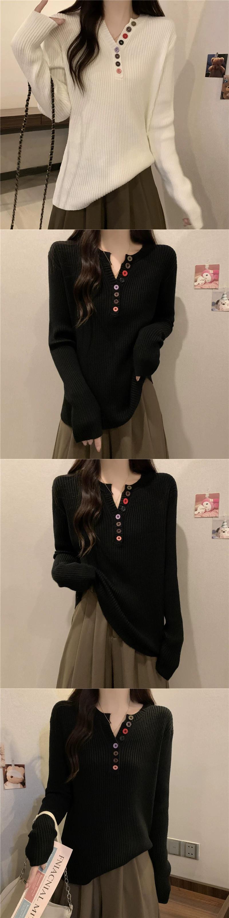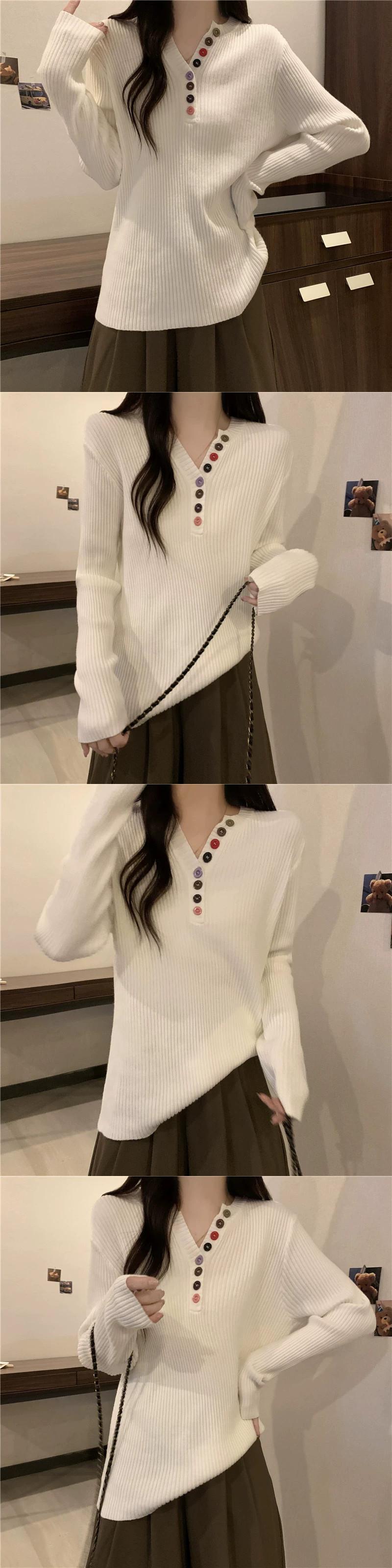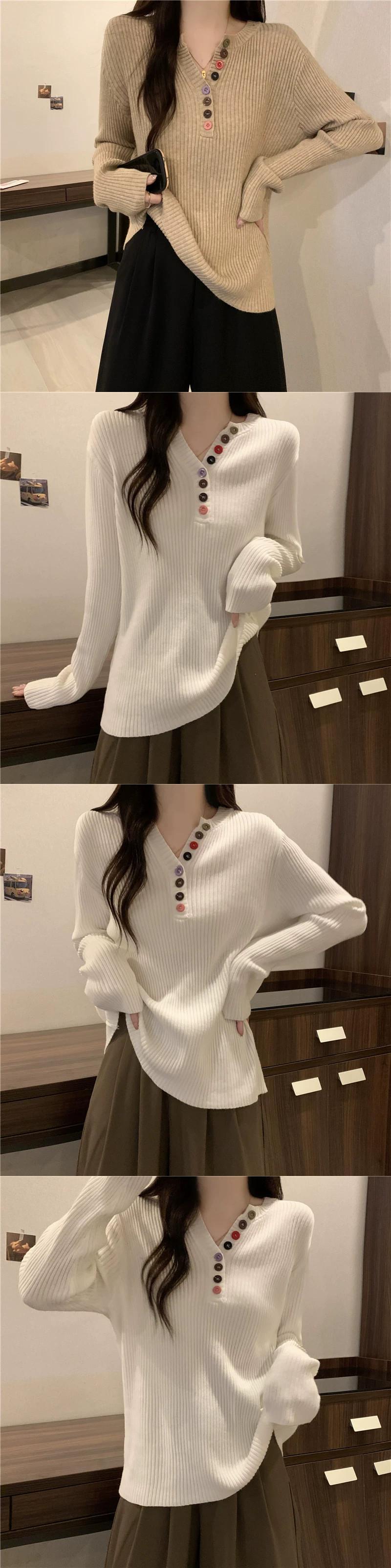 大きいサイズのセーターの女性の秋と冬の 2023 新しいファッションカラフルなボタン V ネック長袖セータールーズ痩身トップ ロング 大きめサイズ オータム 秋物 ウィンター 冬物 Vネック 8884188853154640