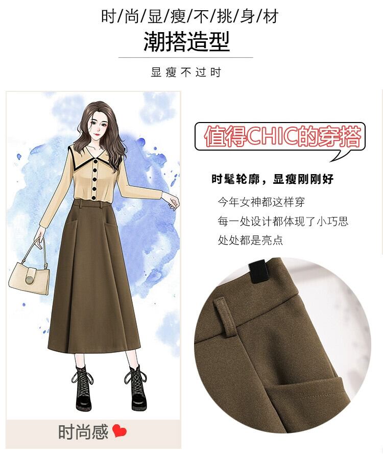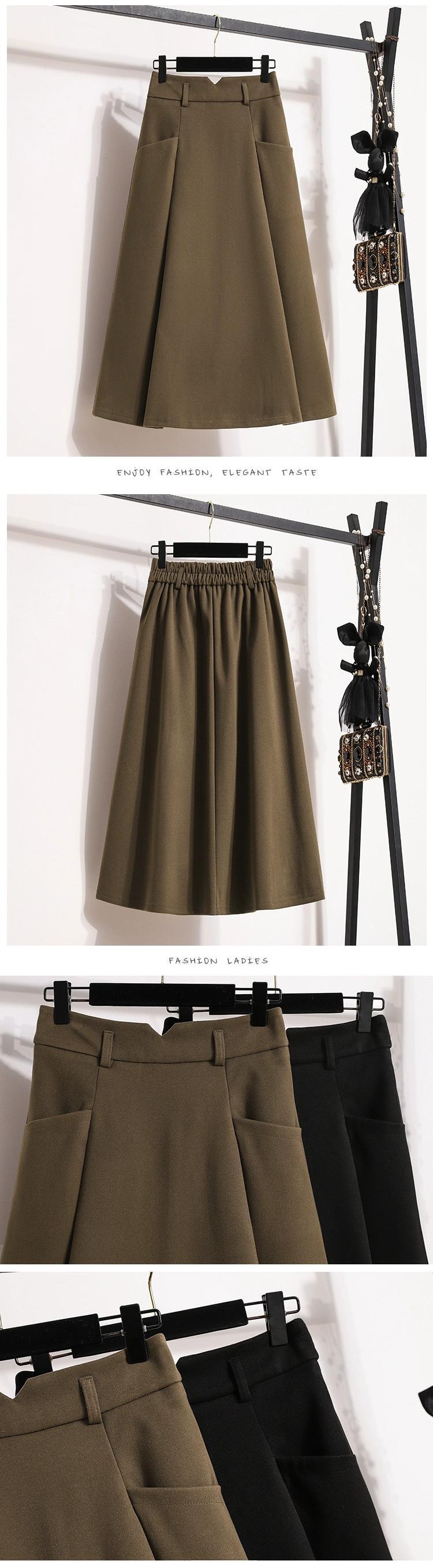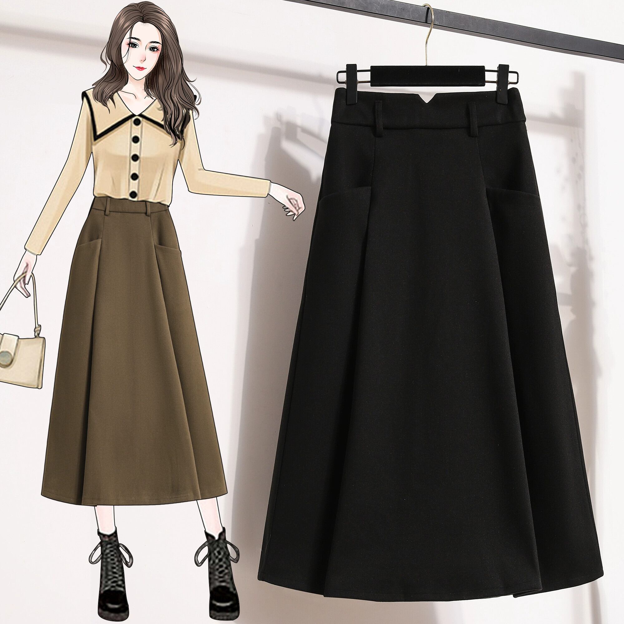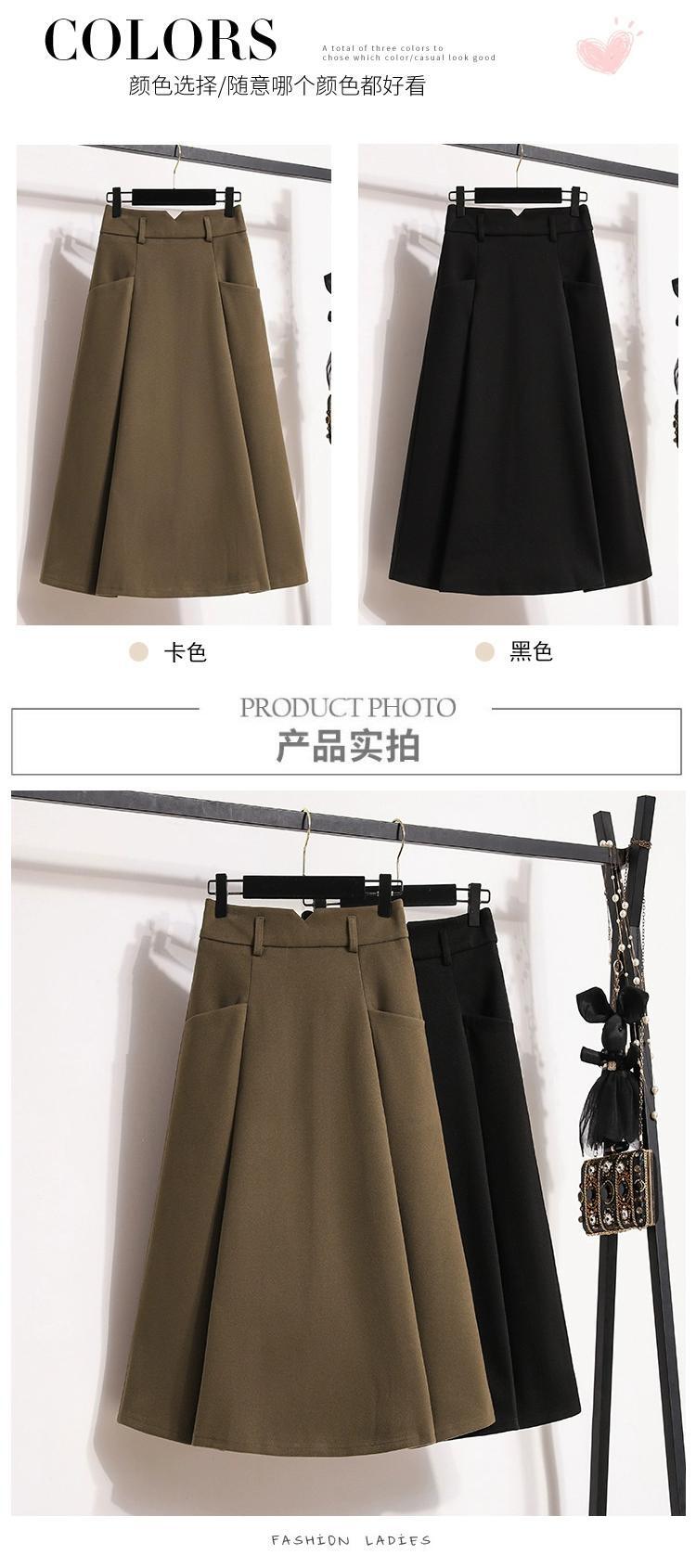プラスサイズの秋の新無地 A ライン傘スカートウールスカート脂肪ミリメートル女性ハイウエスト痩身ベリーロングスカートトレンディな ハイウェスト 大きめサイズ オータム 秋物 Aライン ソリッドカラー 8884138062058068