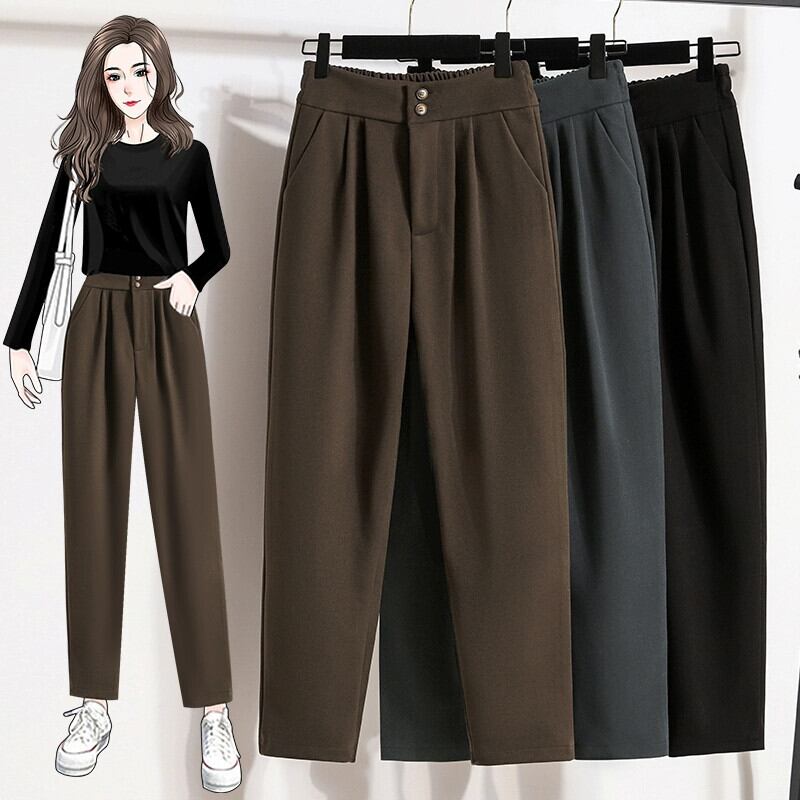 大きいサイズのウールパンツの女性の秋冬 2023 ウエストルーズスリムおばあちゃんキャロットハーレムお父さんパンツ 大きめサイズ オータム 秋物 ウィンター 冬物 8884115321801737