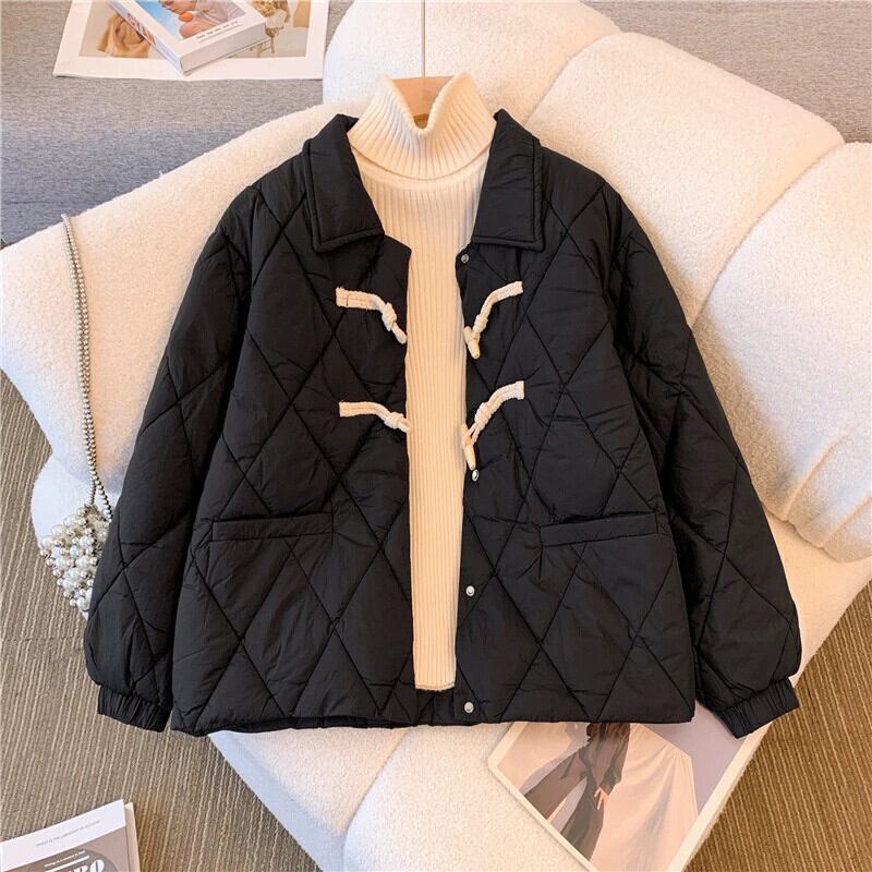 大きいサイズ 2023 冬の新ファットシスターレディースラペル長袖無地ファッショナブルでシックなホーンボタンダウンジャケット ロング 大きめサイズ ウィンター 冬物 ソリッドカラー 8884130442746305