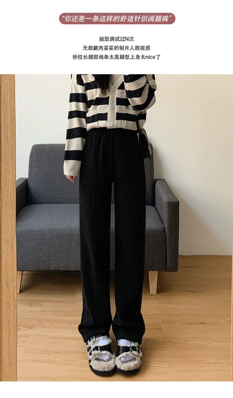 プラスサイズの婦人服 2023 流行の秋の新しいファットシスターブラックルーズストレートカジュアルパンツハイウエストスリム多目的ズボン ハイウェスト 大きめサイズ オータム 秋物 8884173971853465