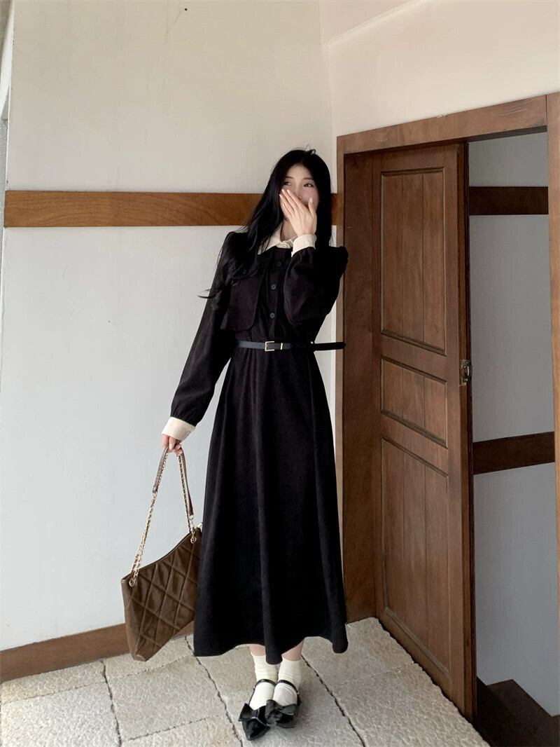 プラスサイズの婦人服 2023 トレンディな秋の新しい脂肪フランスの気質スリムドレス腹をカバーし、年齢を減らすミッドレングス スカート 大きめサイズ オータム 秋物 888412713356357