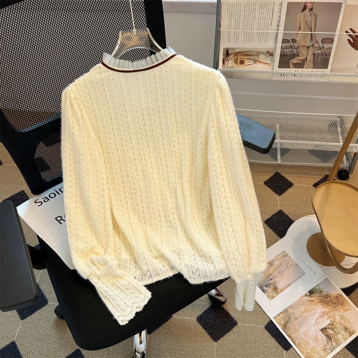 大きいサイズのベルベット肥厚レースシャツ女性の冬の 2023 新しいインナートップ長袖フレンチボトムシャツ ロング 大きめサイズ ウィンター 冬物 8884127597580239