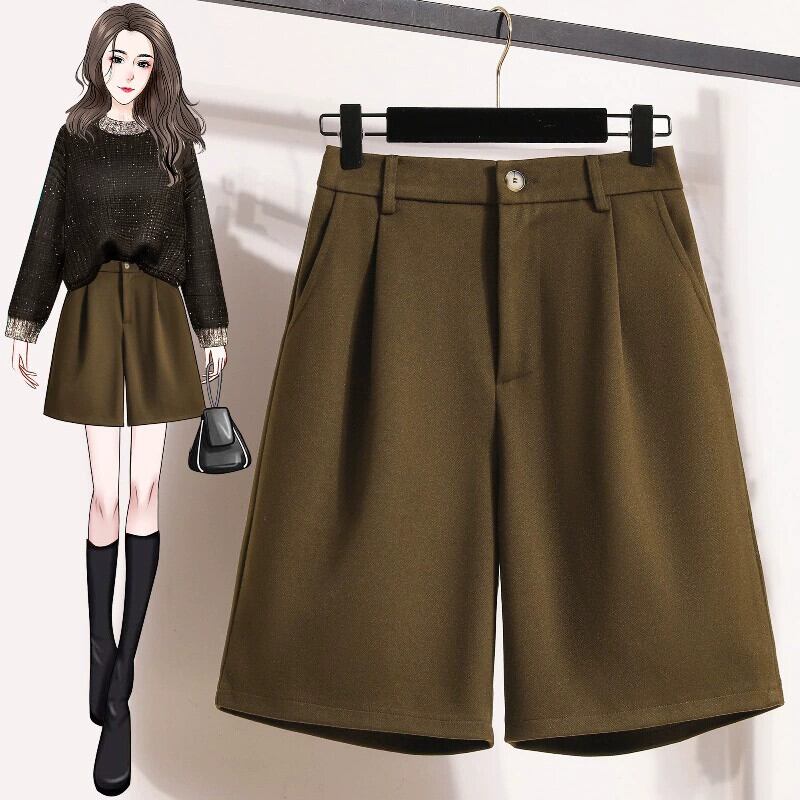 プラスサイズの女性の新しい秋と冬のウールのワイドレッグショーツファットmm女性はお腹をカバーし、洋ナシ型の体型をスリムにし、トレンディなカジュアルパンツを作ります 大きめサイズ オータム 秋物 ウィンター 冬物 ブルマー 8884194322577319