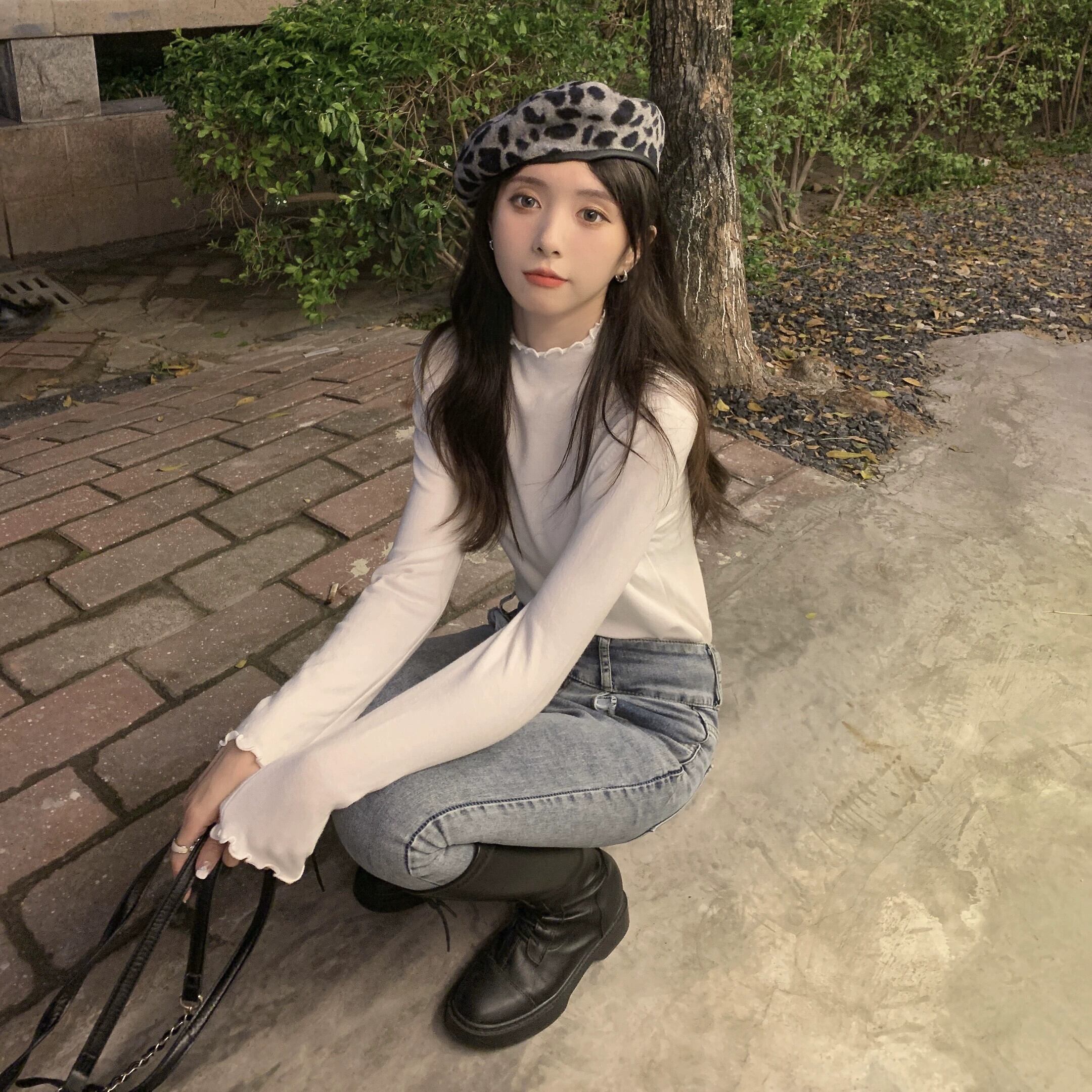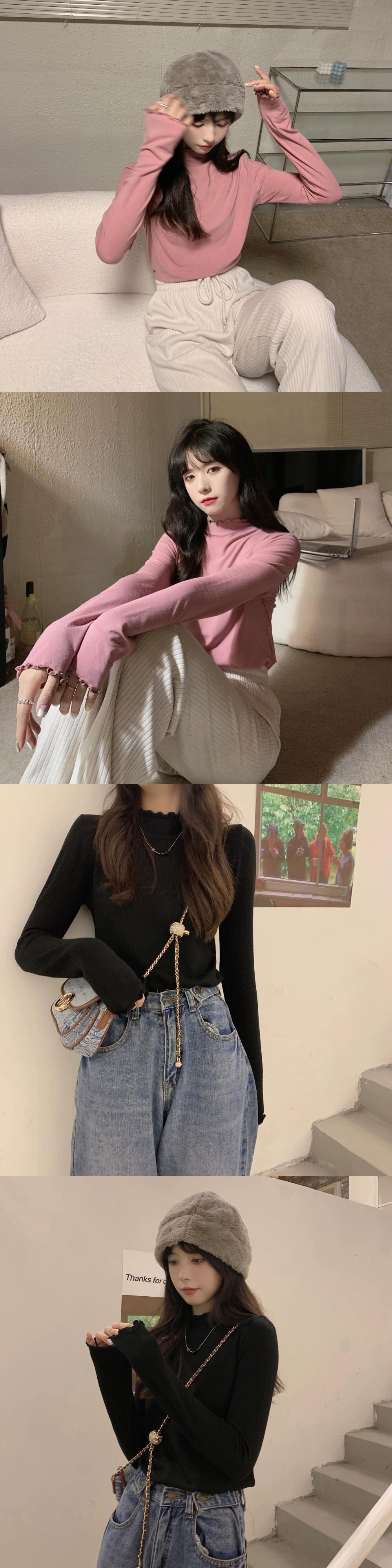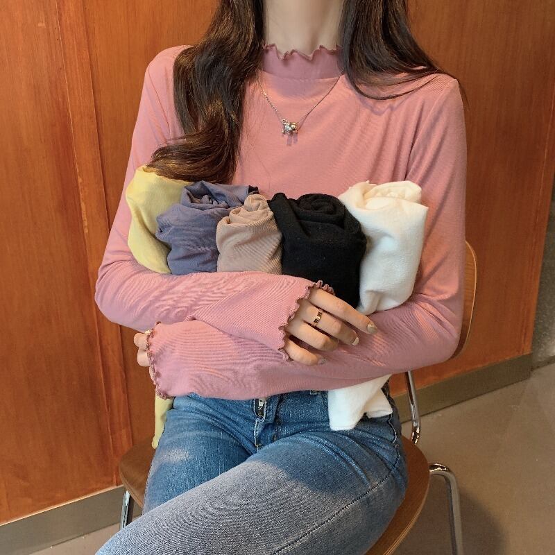 プラスサイズの秋の新作ボトリングシャツ、右肩、ハーフタートルネック、太いmmの暖かい長袖Tシャツの女性、デザインインナートップ ロング 大きめサイズ オータム 秋物 8884156195942055