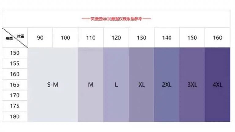 体重表記について、中国は2倍の体重で表記されています。例えば、Lサイズ→推奨90kg〜116kgであれば、45~58kg程度の方が対象になります。海外サイトを使用する方はお気を付けください。