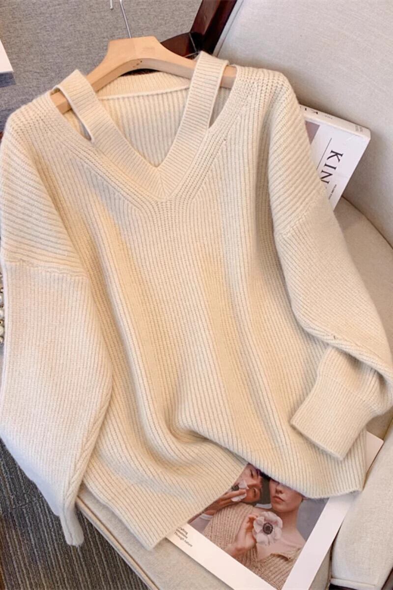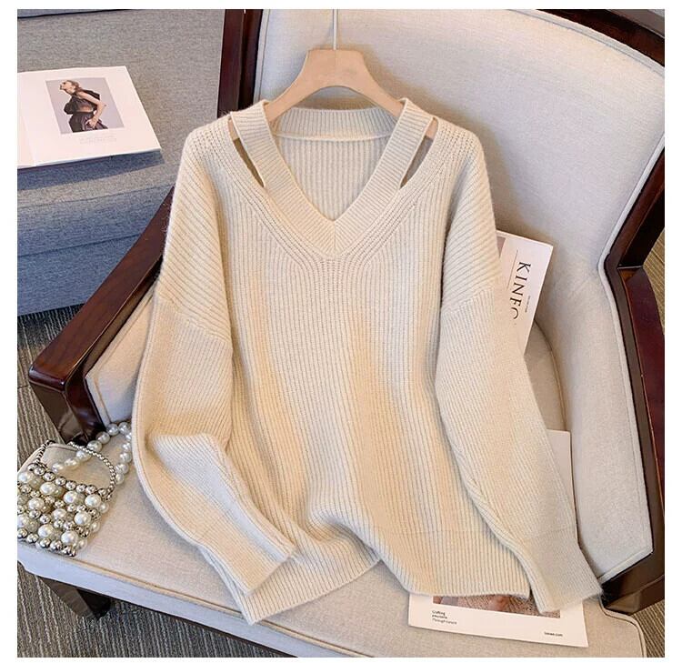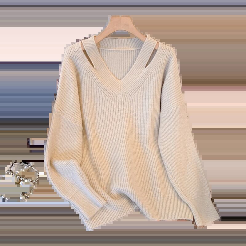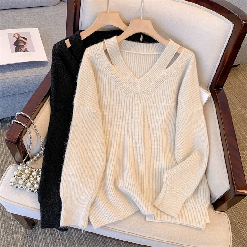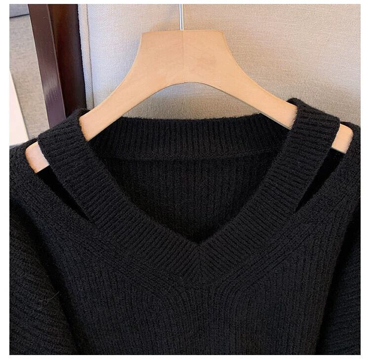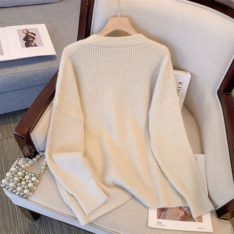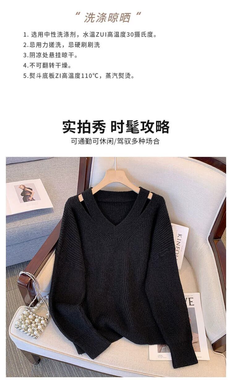 プラスサイズの婦人服 2023 秋の新スタイル少し太った MM ルーズ痩身 V ネック長袖肉カバーミドル丈セータートレンディ ロング 大きめサイズ オータム 秋物 Vネック 8884196810288372