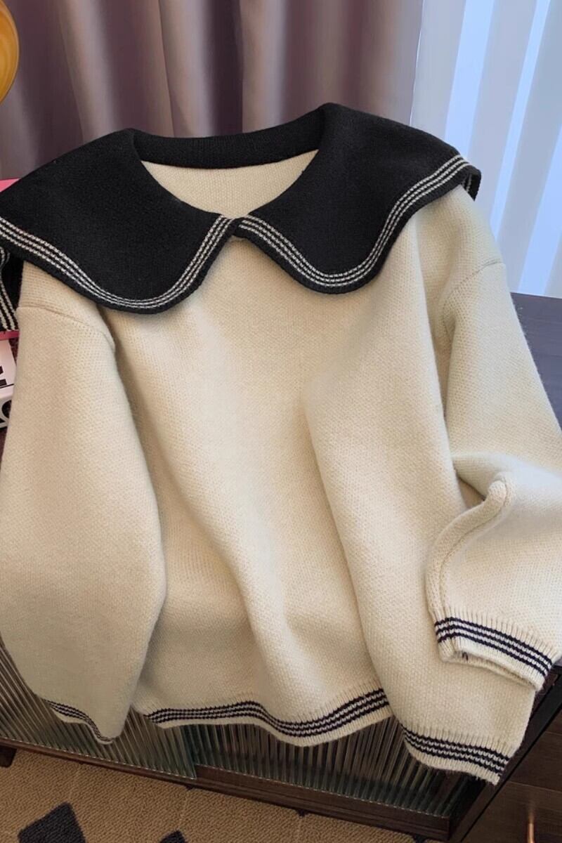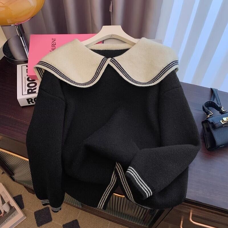 大きいサイズの女性のネイビーカラー長袖セーターの女性の秋と冬の 2023 新しいアウターウェアファット MM ファッションルーズスリムセーター ロング 大きめサイズ オータム 秋物 ウィンター 冬物 8884145100274870