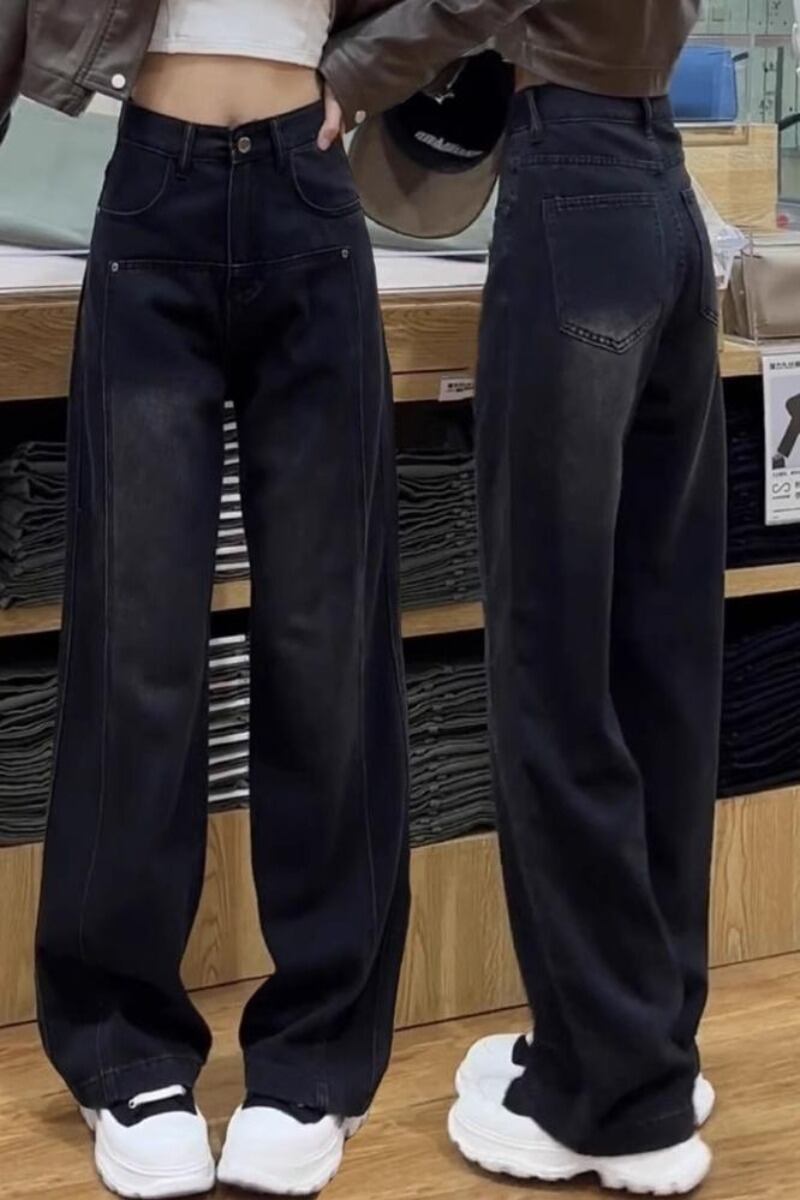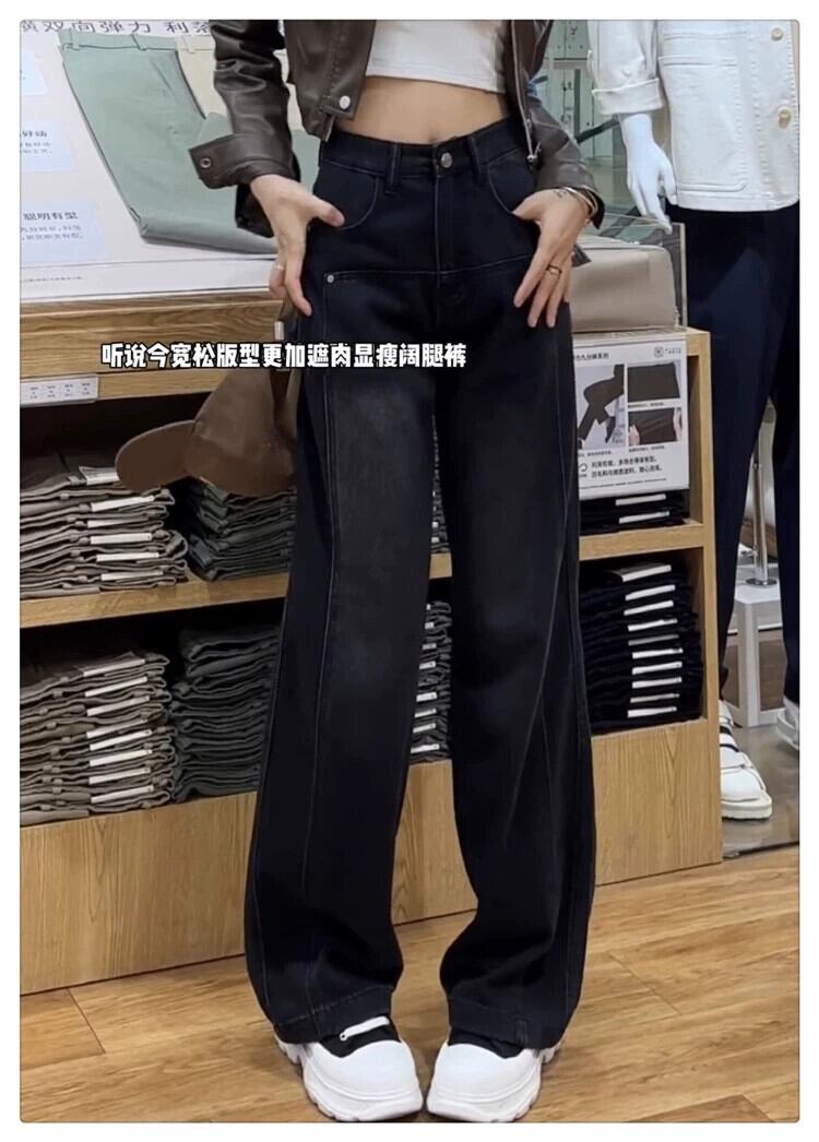 黒ベルベットワイドレッグジーンズ女性の秋と冬の新しいスタイルの小さなフロアレングスパンツ脂肪mm大きいサイズスリムストレートパンツ ブラック 大きめサイズ オータム 秋物 ウィンター 冬物 8884132254994056