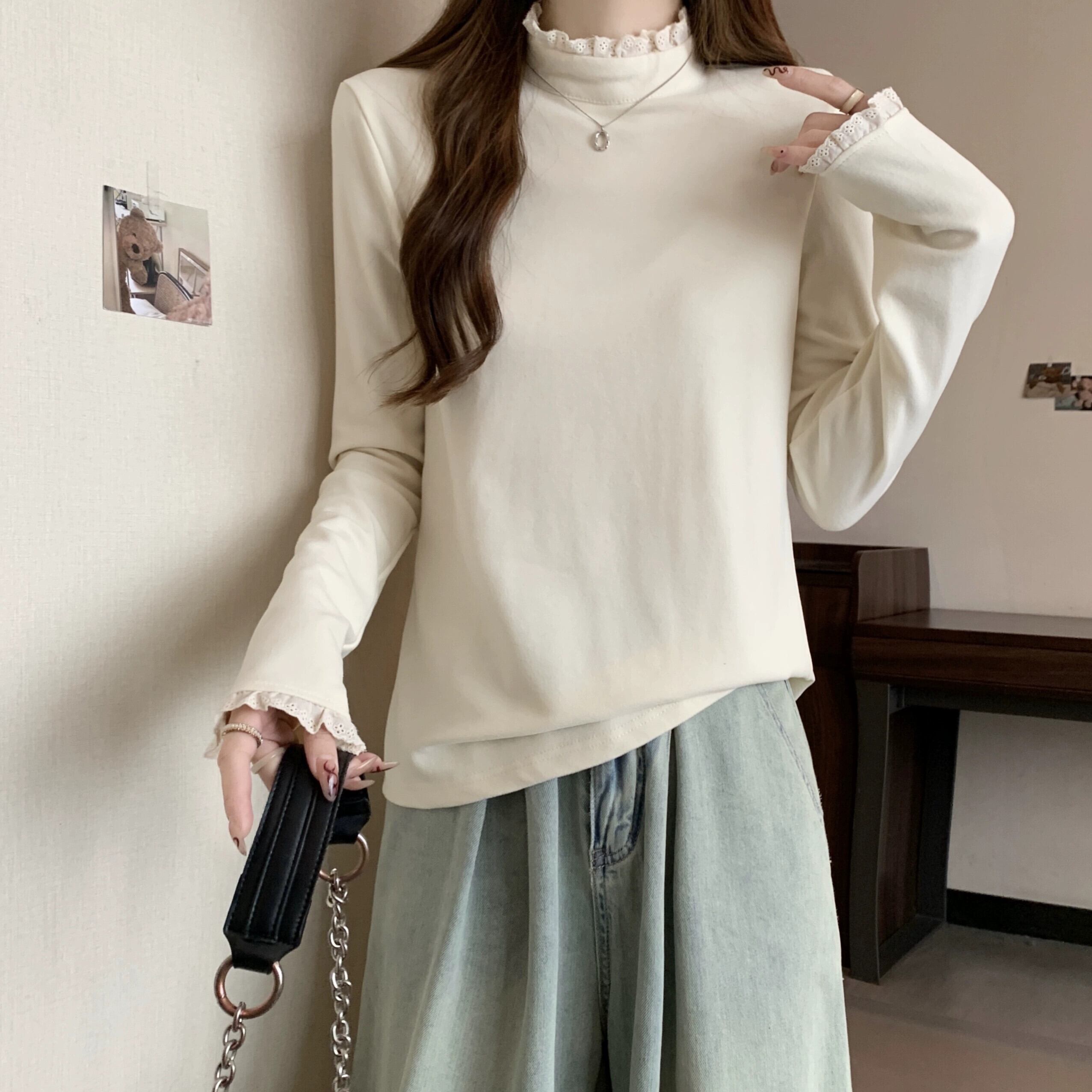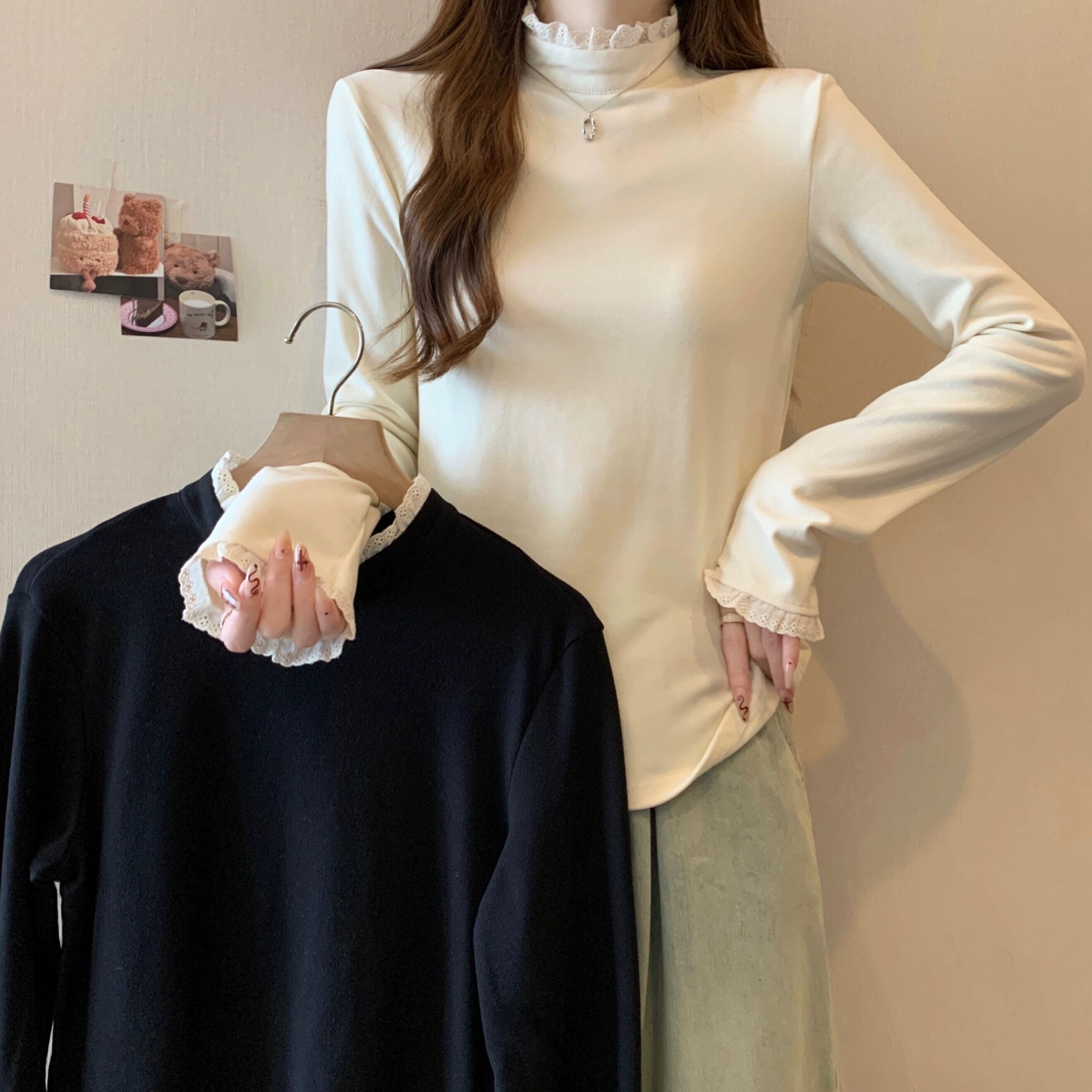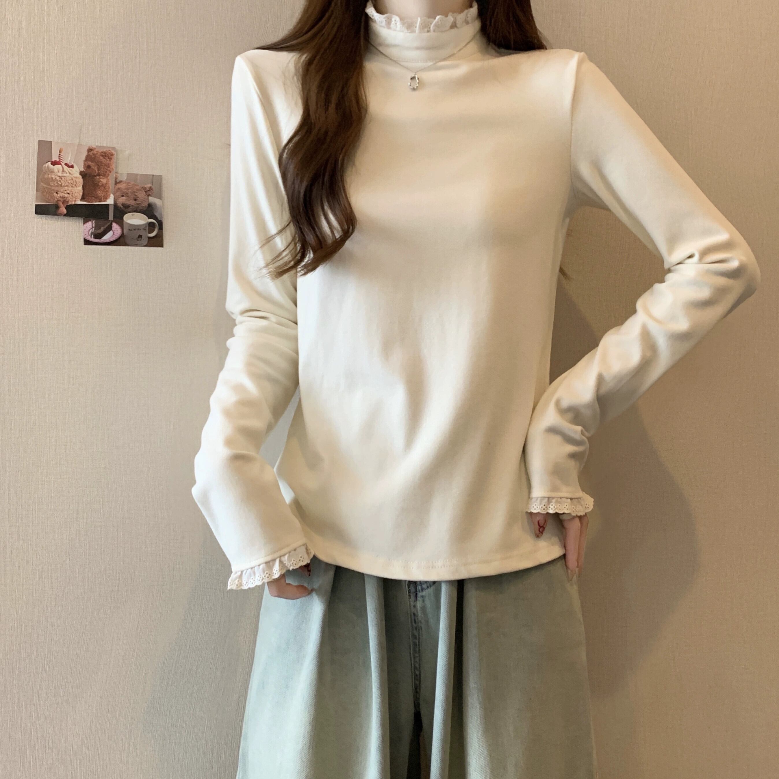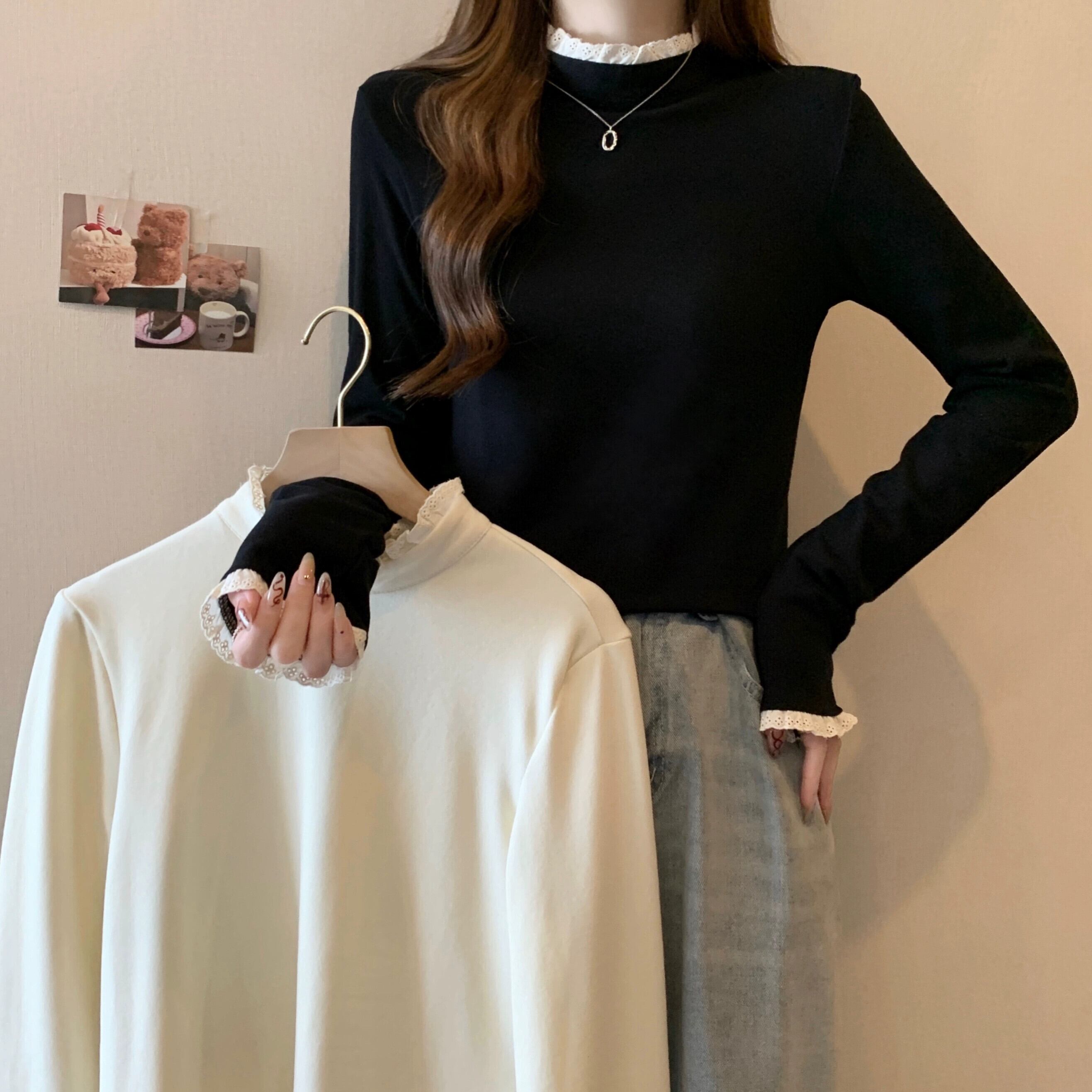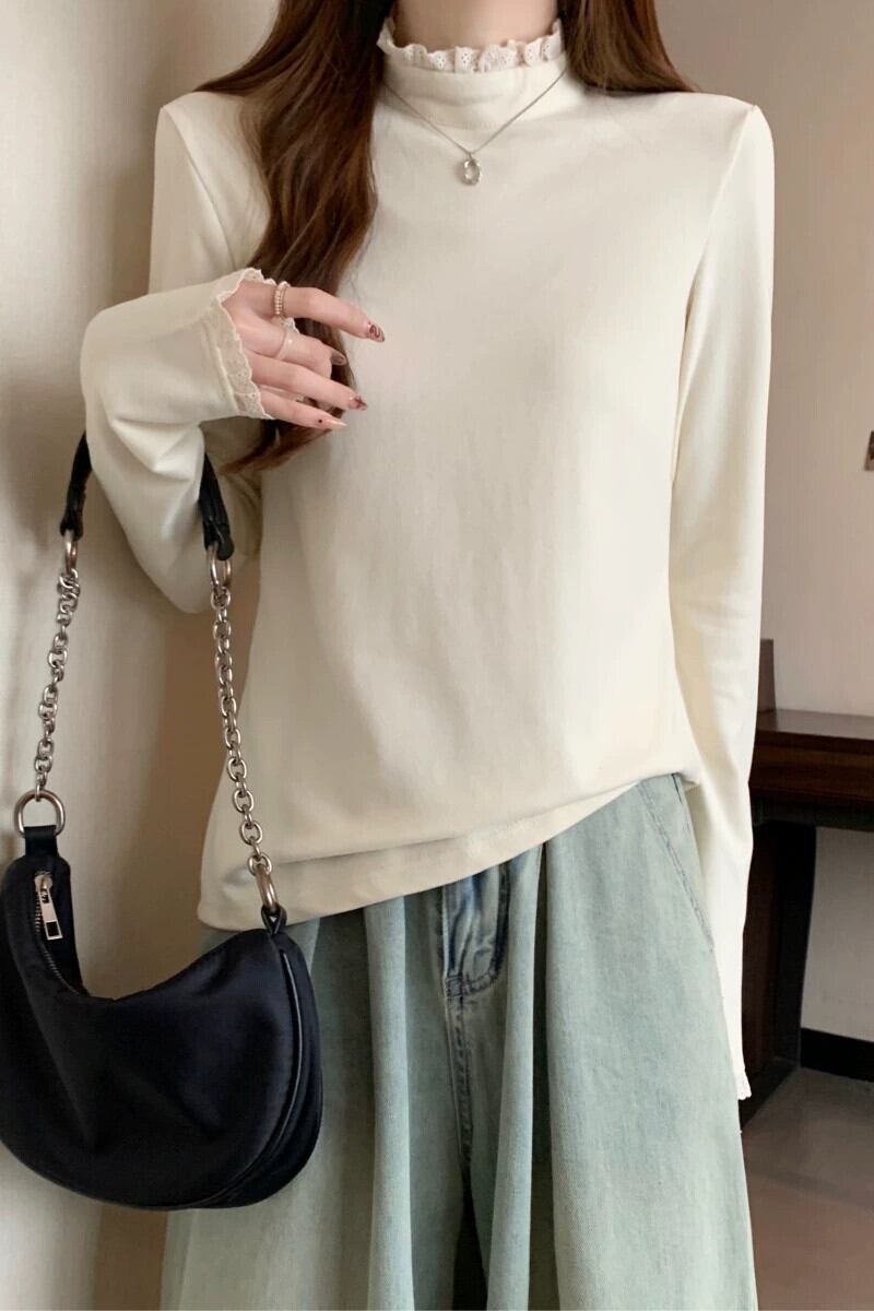 プラスサイズの女性の 2023 トレンディな秋スタイルファットシスター美しい西洋ガスシャツ無地スリムトップ Tシャツ 大きめサイズ オータム 秋物 ソリッドカラー 8884160484837578