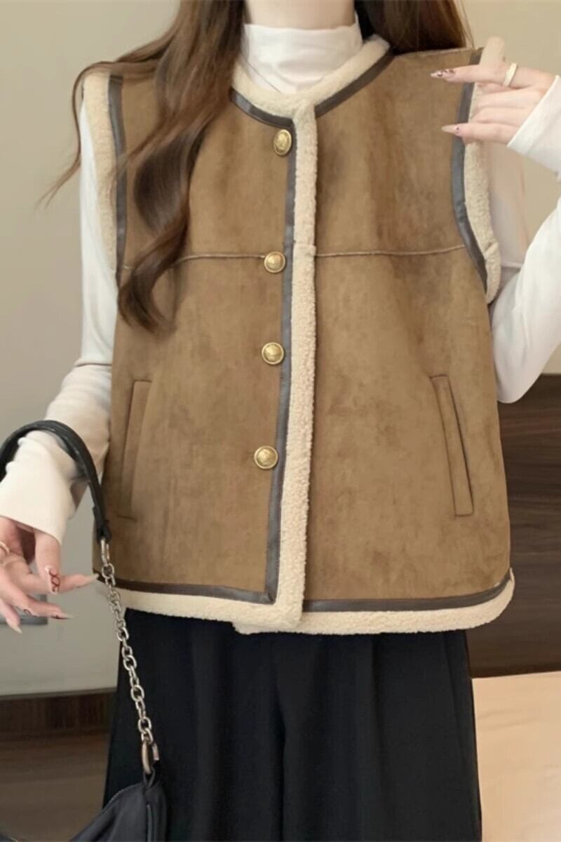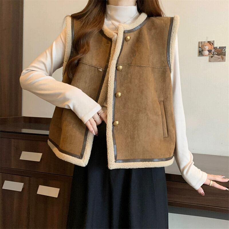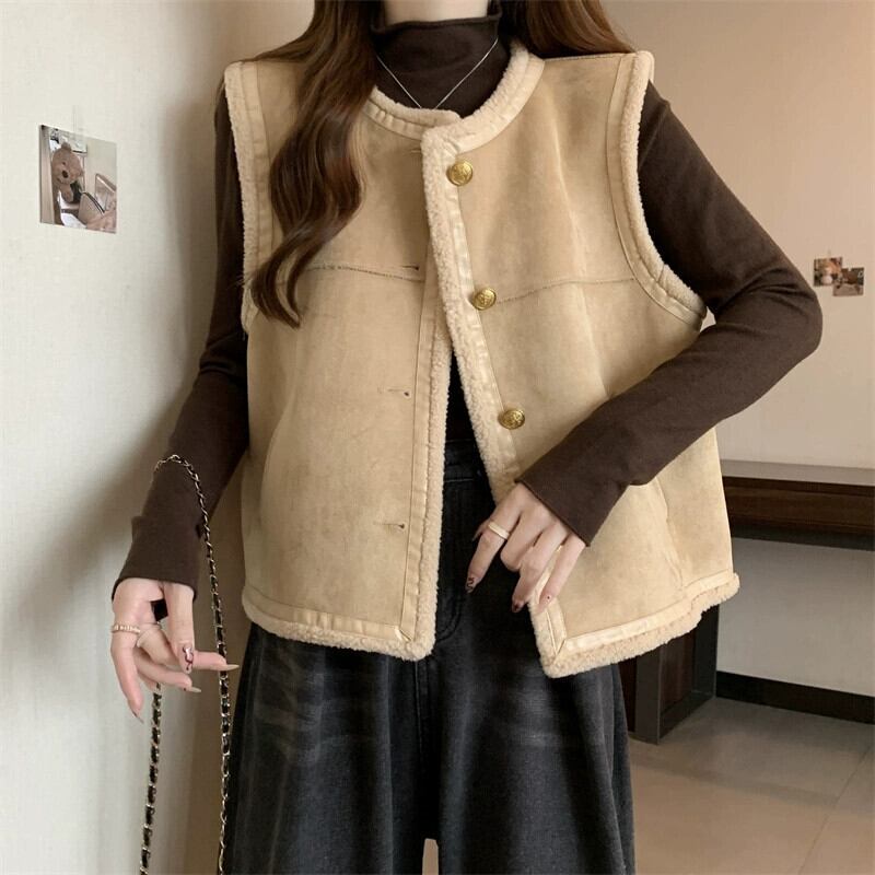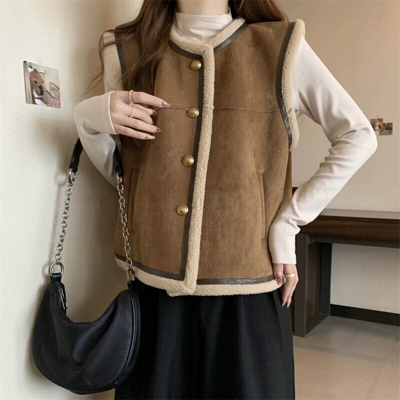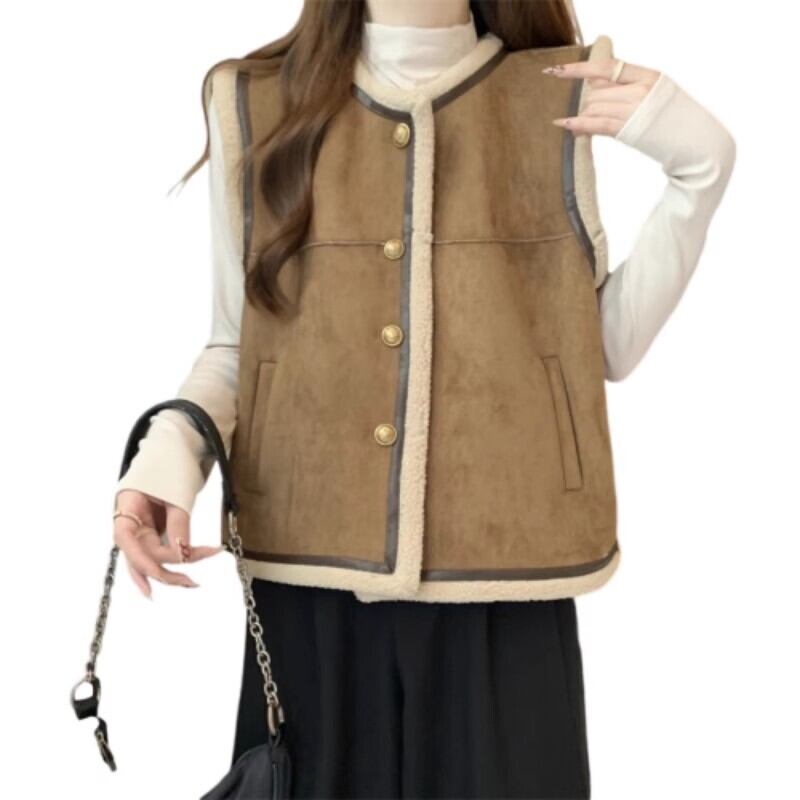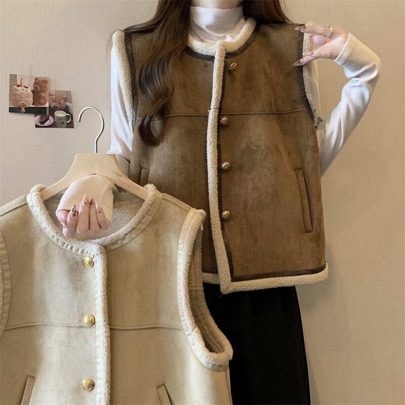 大きいサイズの秋の新毛皮ワンピースベスト女性ファットMMルーズでスリムな肥厚ウールチョッキトレンディ 大きめサイズ オータム 秋物 8884159393203593
