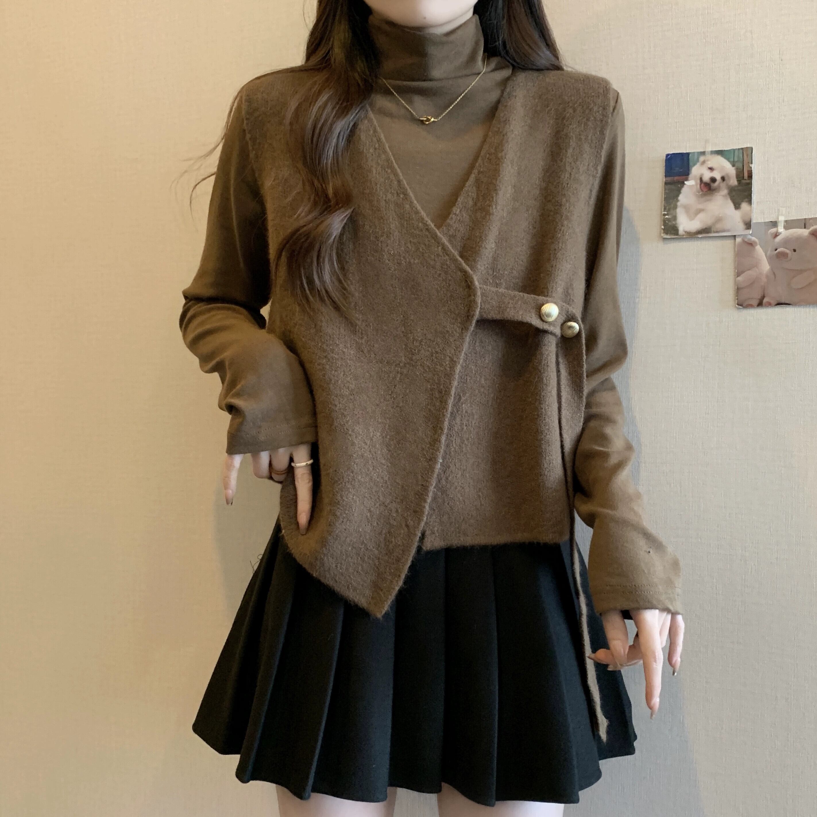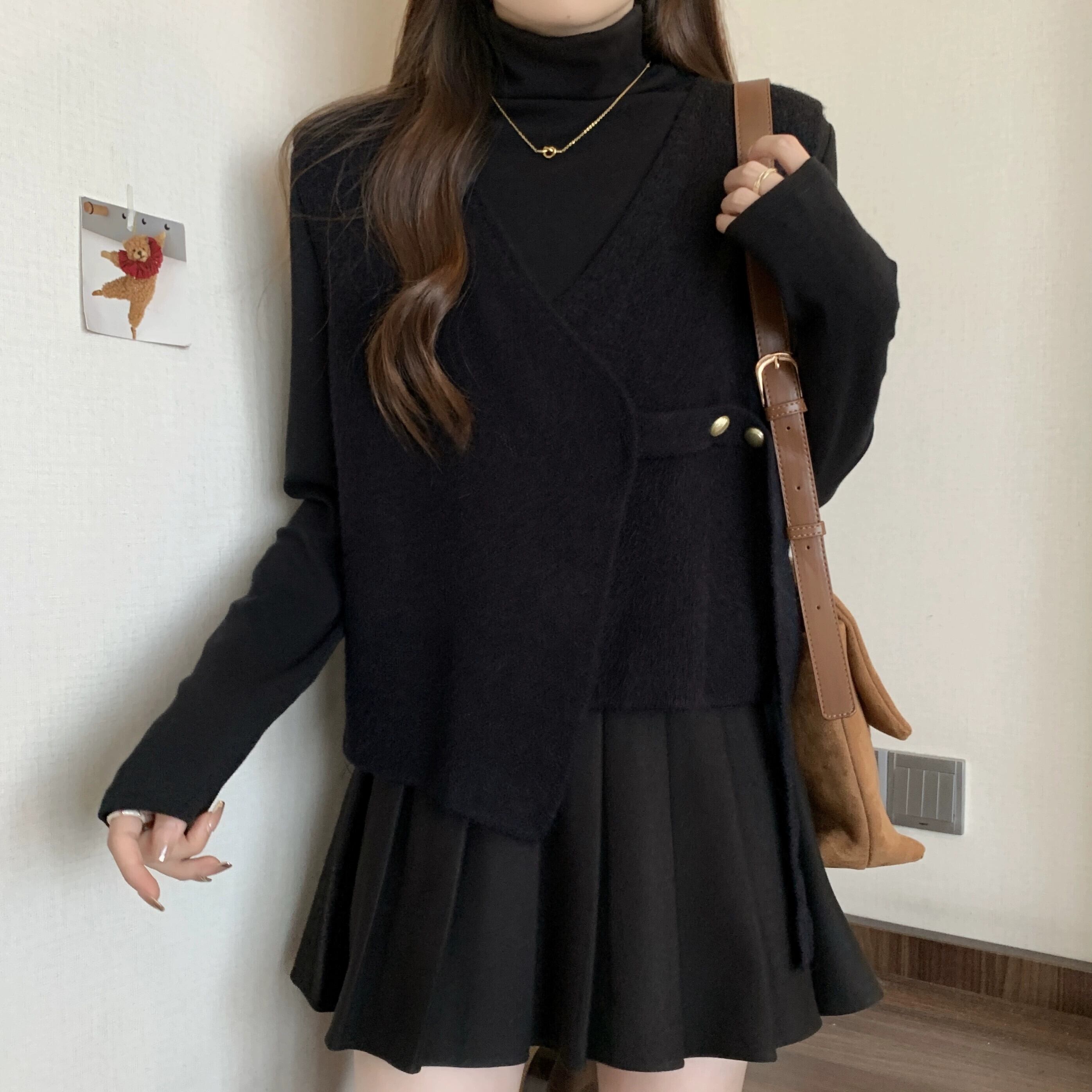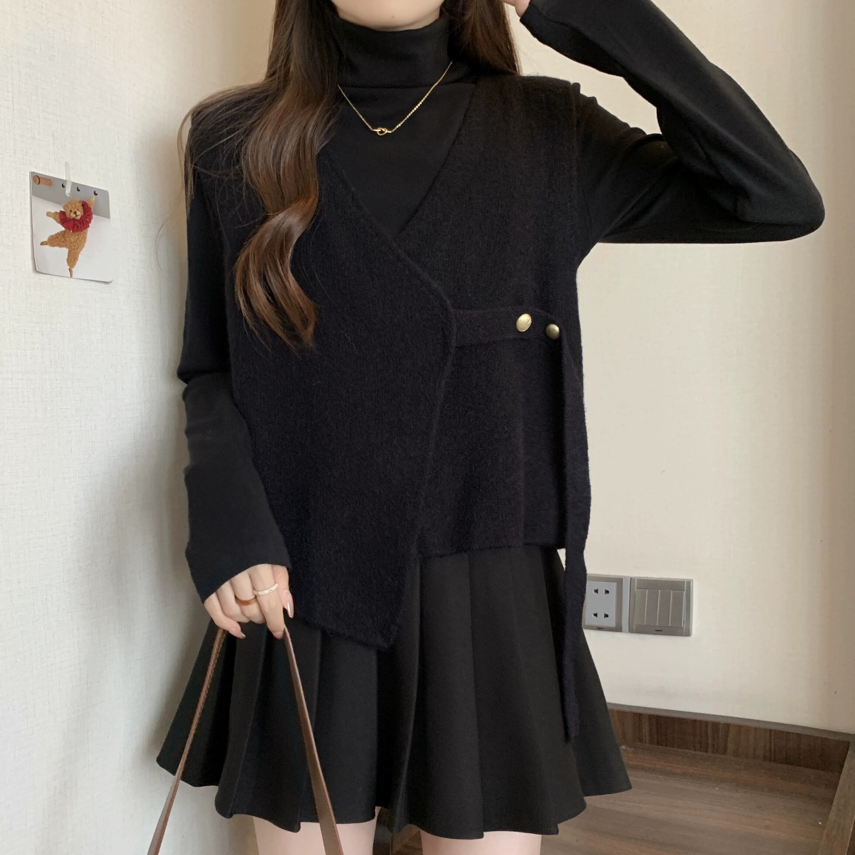 プラスサイズのスーツの女性の秋と冬の新しいスタイルのファットスリムハーフタートルネックボトミングシャツトップニットベストツーピーストレンディセット 大きめサイズ オータム 秋物 ウィンター 冬物 888416089672908