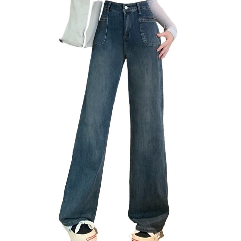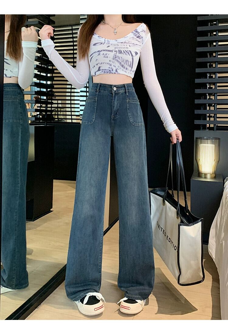 プラスサイズの婦人服ファットミリメートル秋の新スタイル 2023 スリムハイウエストプラスベルベット肥厚ナローワイドレッグジーンズ多用途ズボン ハイウェスト 大きめサイズ オータム 秋物 ワイドパンツ 8884151231260705