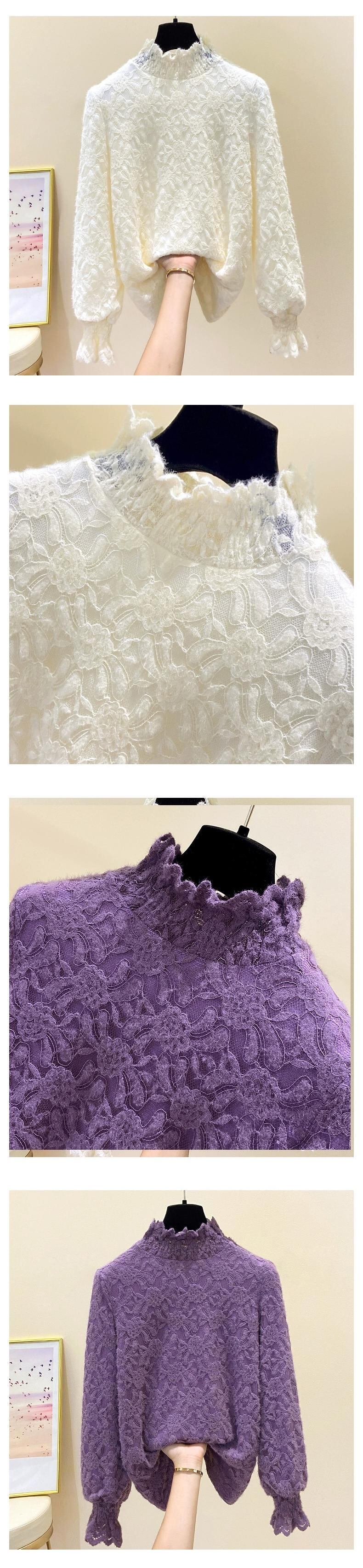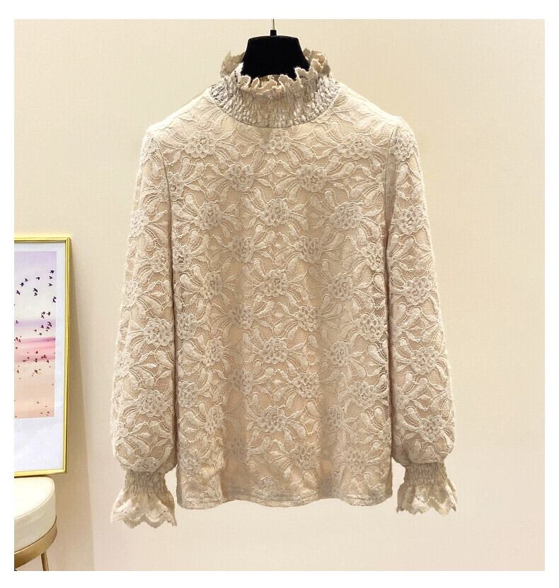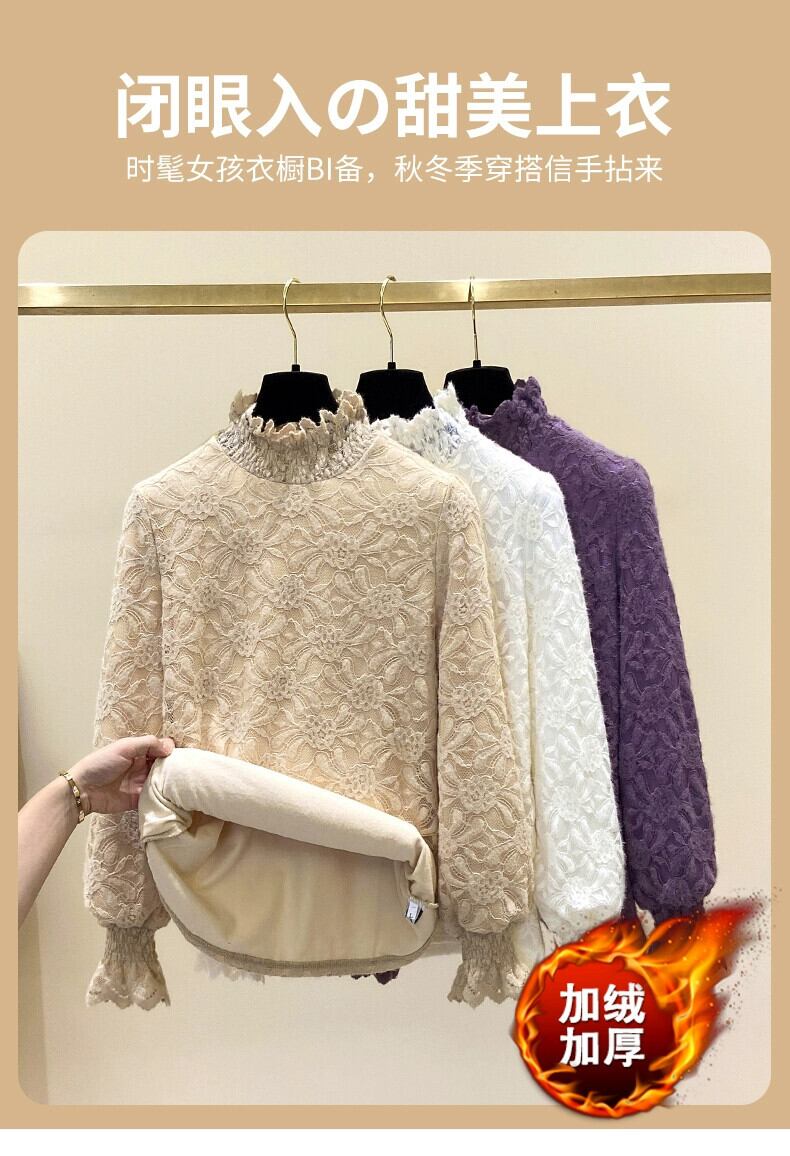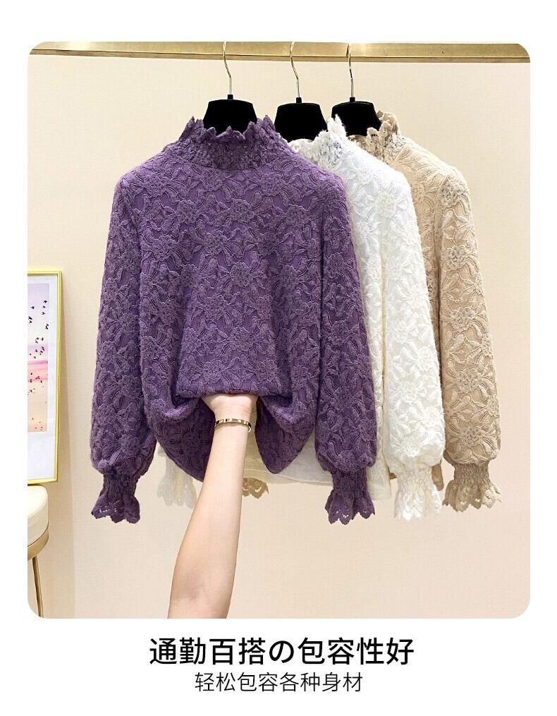 プラスサイズの女性の脂肪 mm ハーフタートルネックレースボトミングシャツ秋の新 2023 eign スタイルインナースタイル優しい風シフォンシャツ 大きめサイズ オータム 秋物 8884165657232945