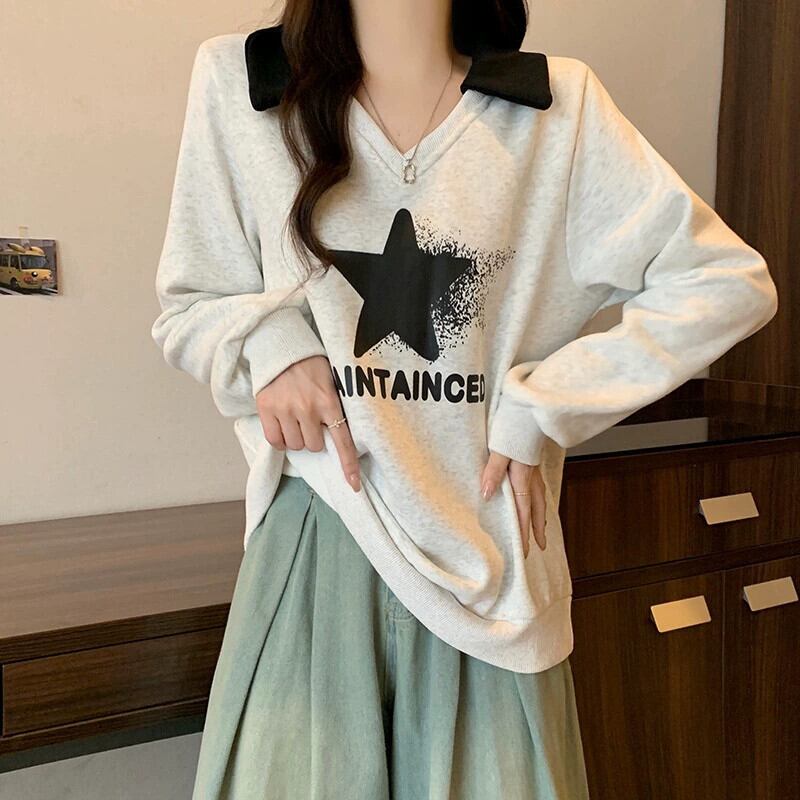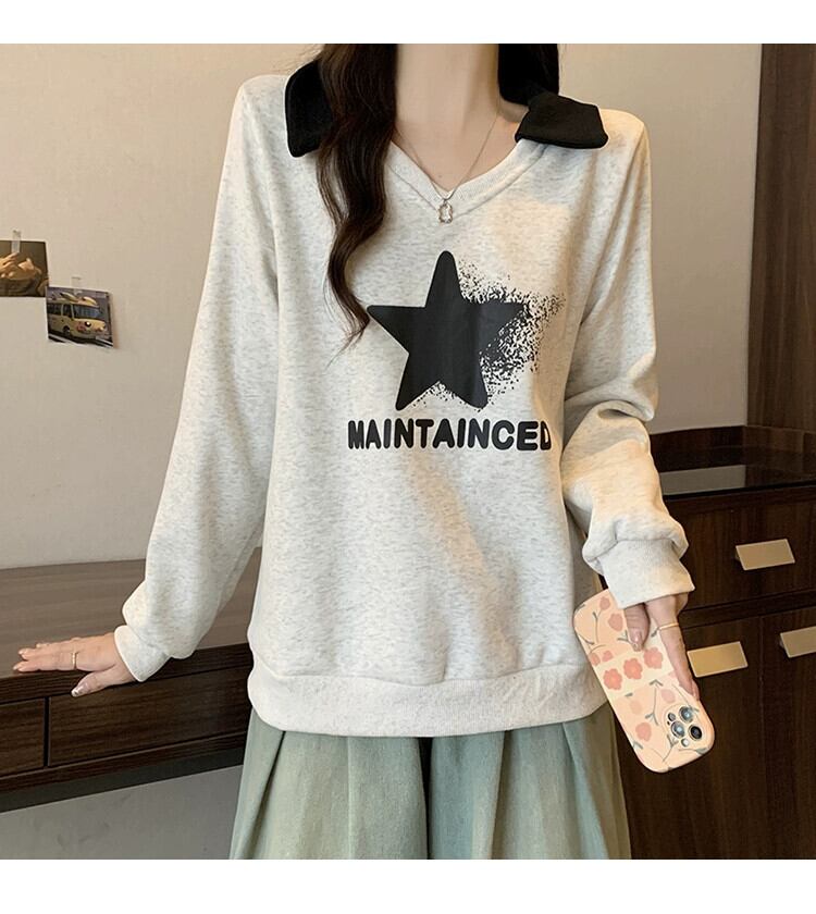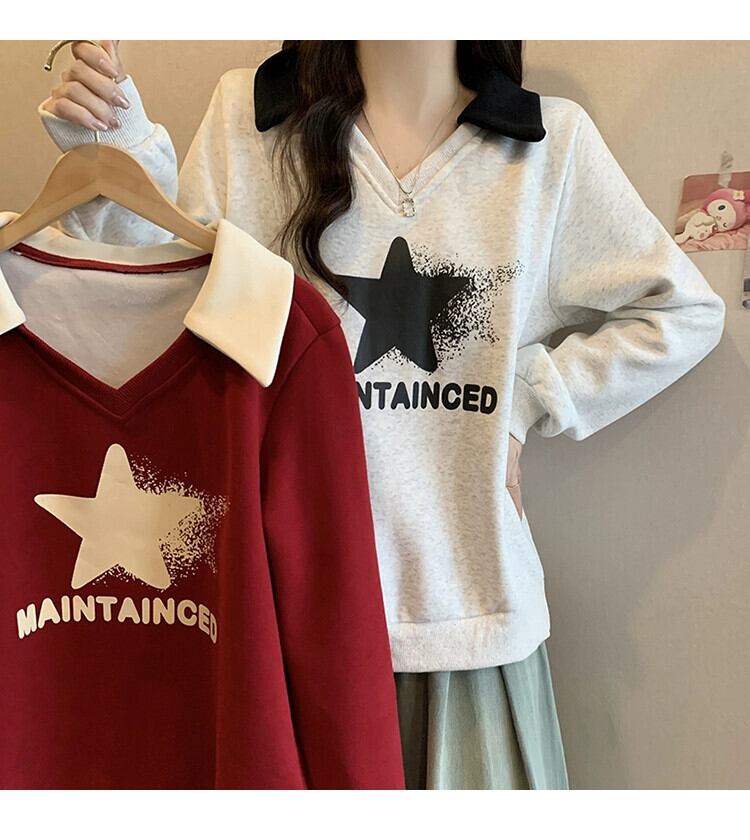 プラスサイズの婦人服 2023 トレンディな秋の新ファットシスターラペルアメリカンスタイルベルベット厚みのあるプリントスウェットシャツ多用途トップトレンディ 大きめサイズ オータム 秋物 888416820369299