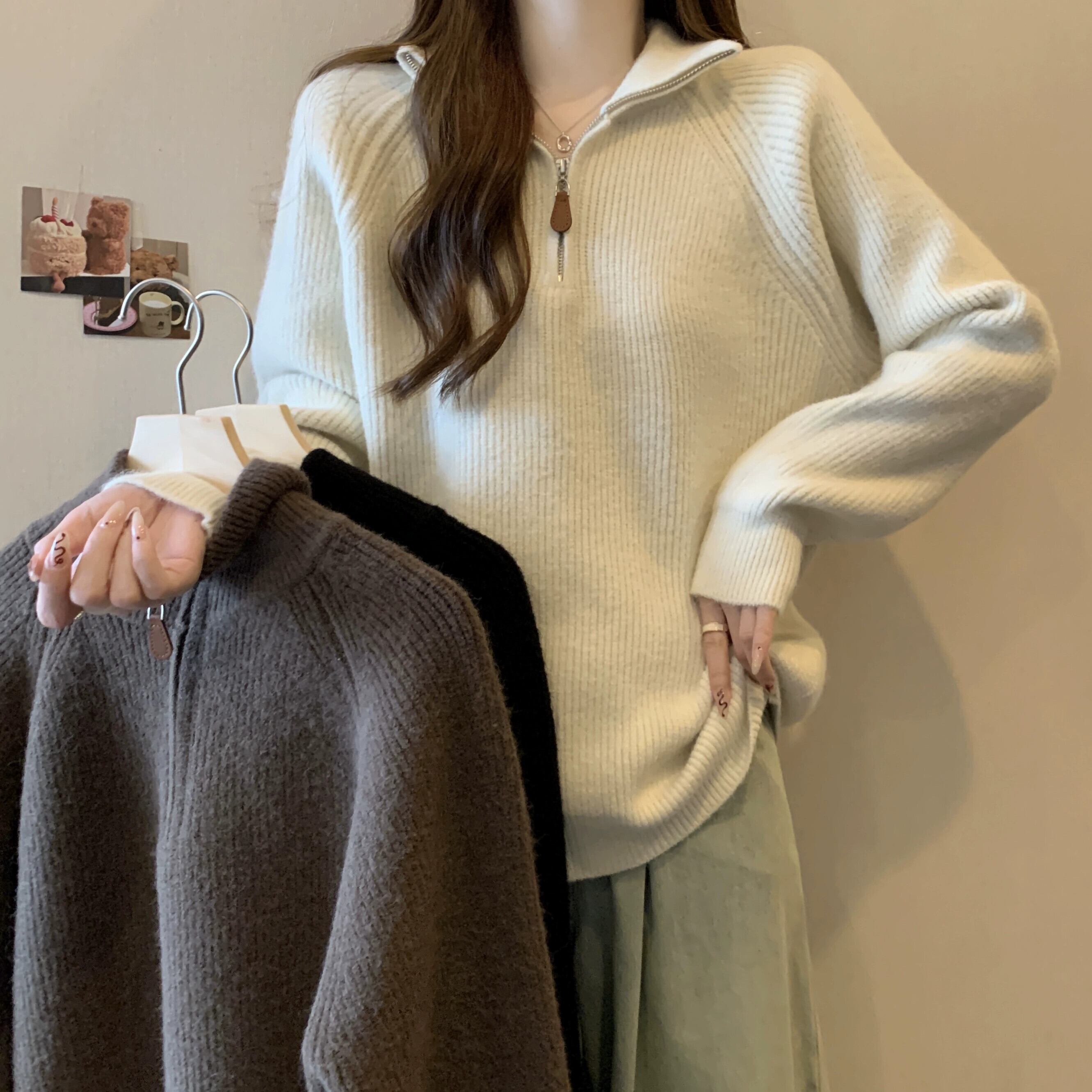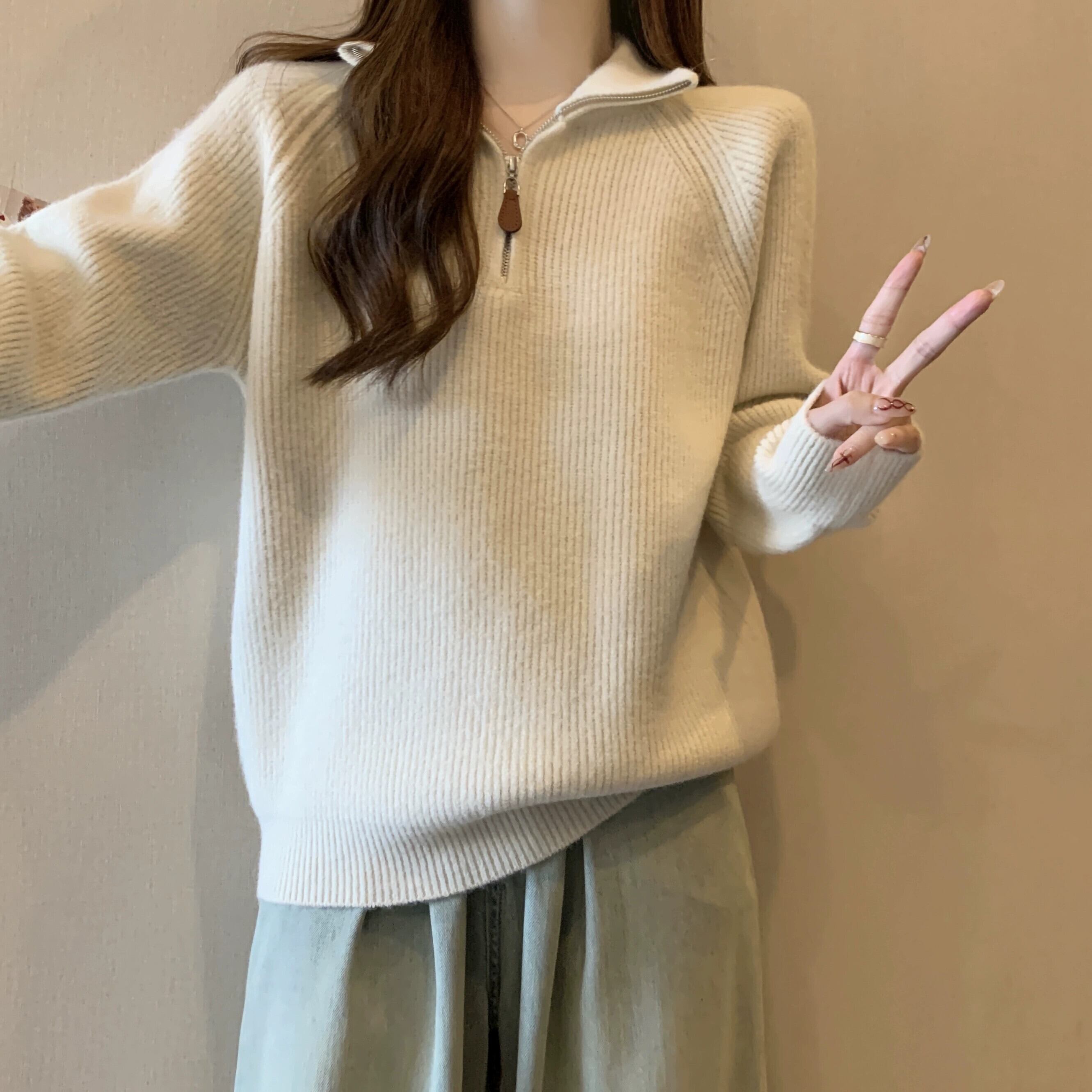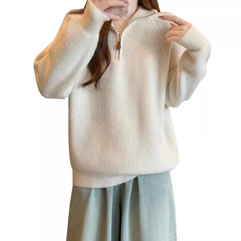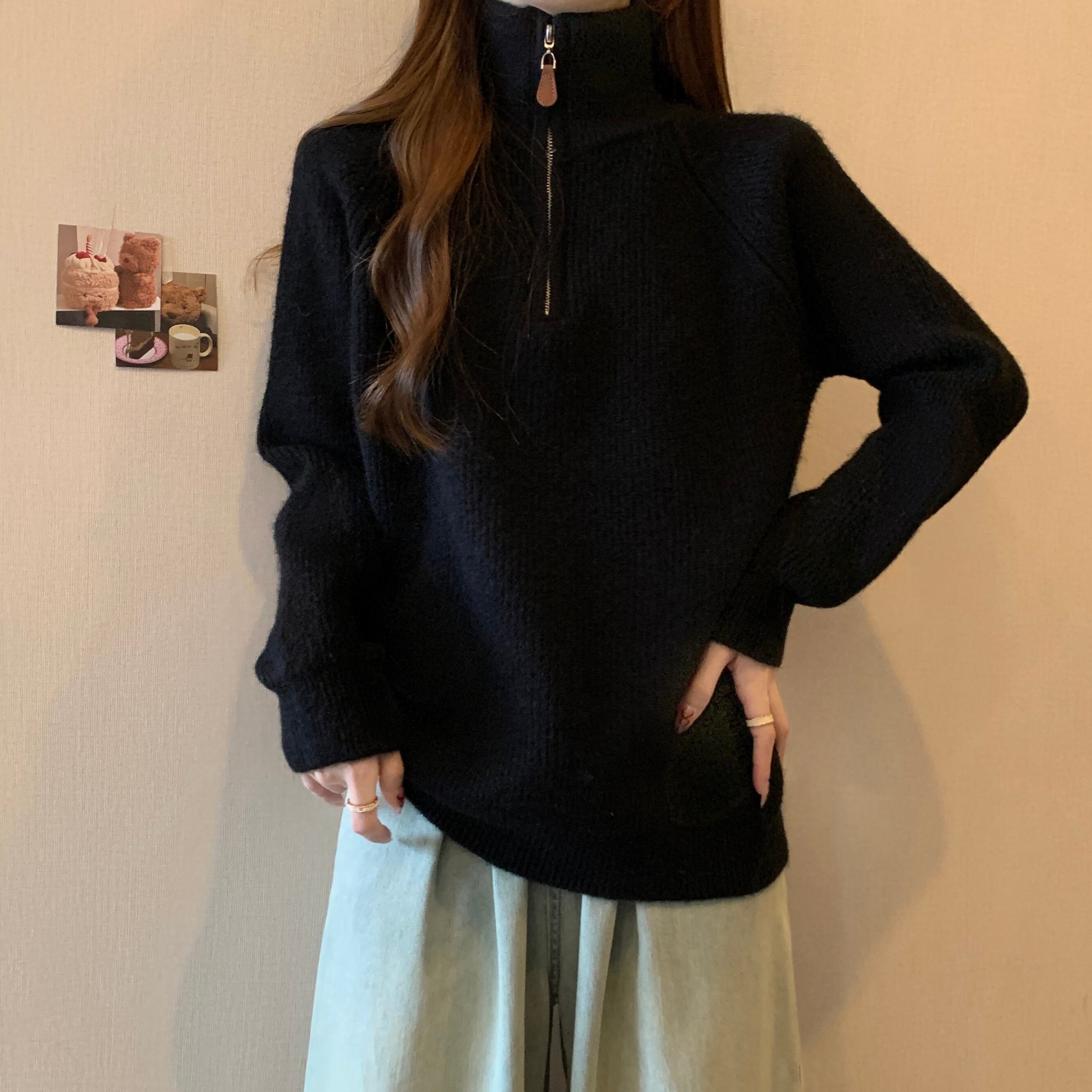 大きいサイズのソフトでワックス状のハーフジップタートルネックセーターの女性の秋と冬 2023 新しい脂肪 mm 痩身と西洋スタイルの長袖セーター ロング 大きめサイズ オータム 秋物 ウィンター 冬物 8884151919589166