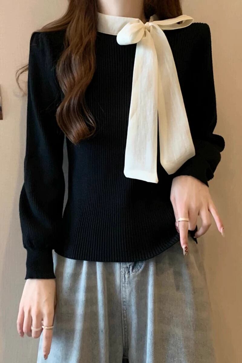プラスサイズの女性のセーター女性の 2023 秋の新しいデザインニッチファッションネクタイリボン多用途トップ 大きめサイズ オータム 秋物 888413459414062