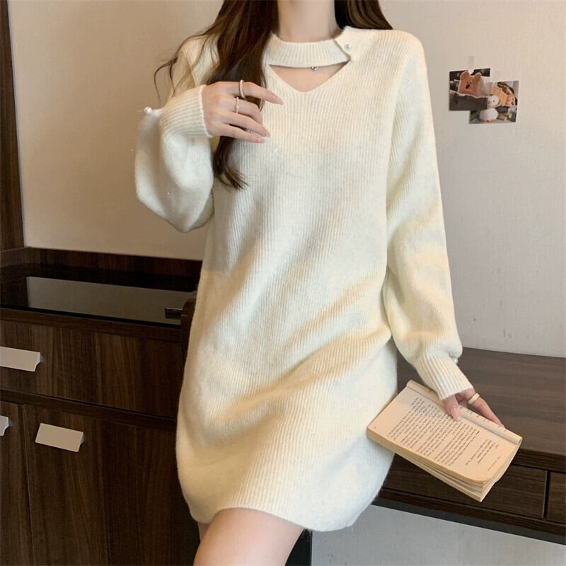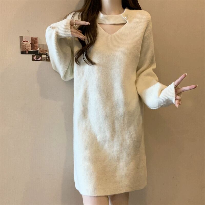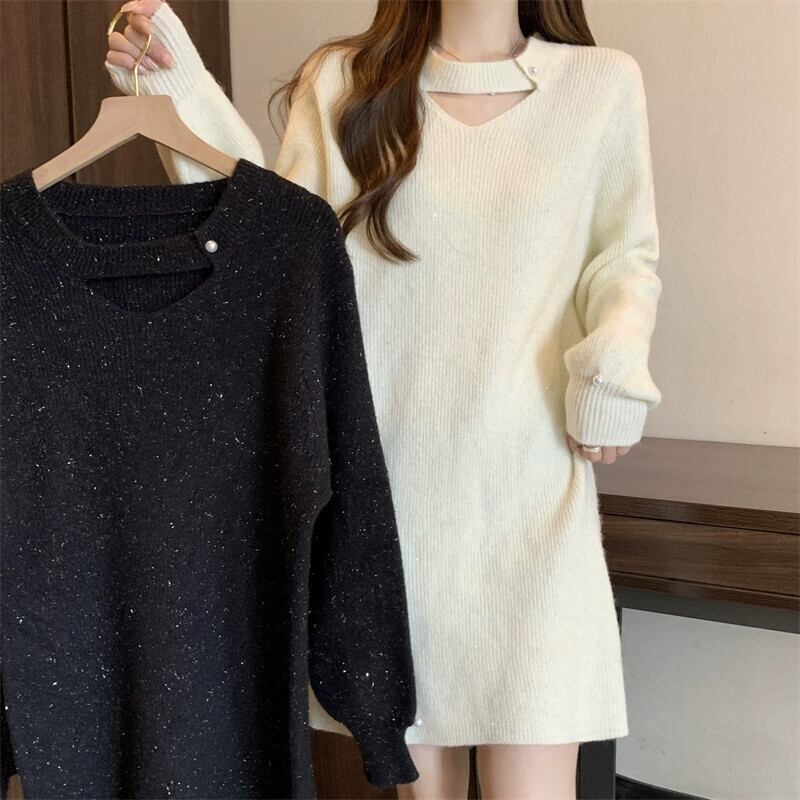 プラスサイズの女性の秋と冬のインナーウェアニットセータードレス脂肪ミリメートル怠惰なスタイルルーズ痩身ミッドレングスボトスカート 大きめサイズ オータム 秋物 ウィンター 冬物 8884129043137969
