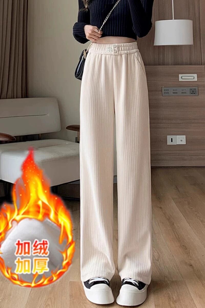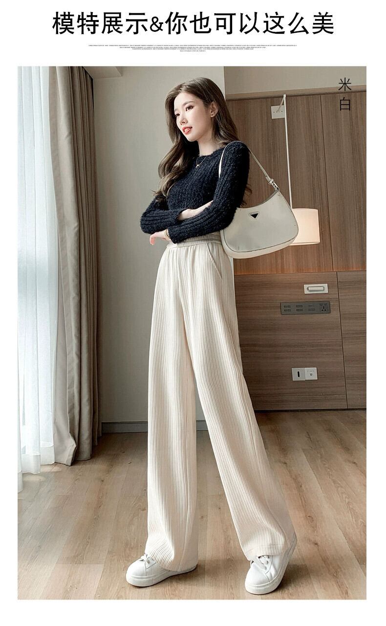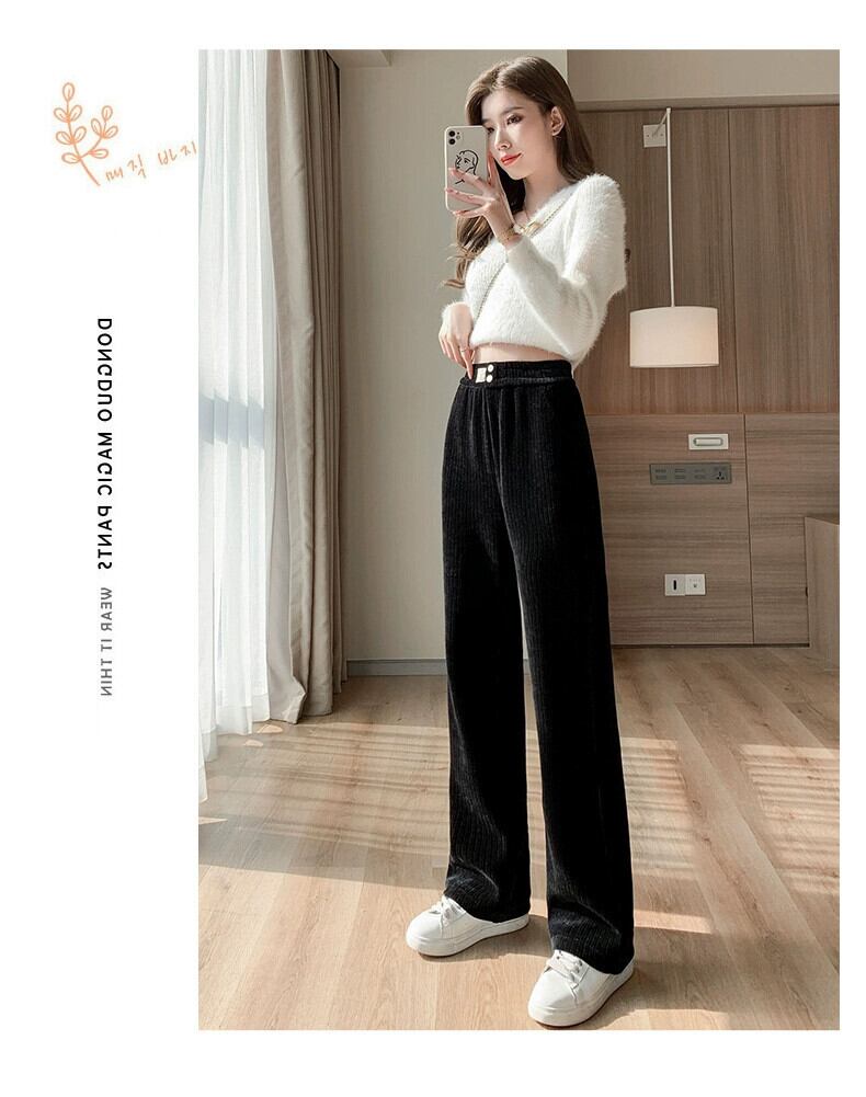 大きいサイズの秋のコーデュロイワイドレッグパンツ、ベルベットの太った女性、スリム、ルーズでドレープのあるファッショナブルなカジュアルストレートパンツ 大きめサイズ オータム 秋物 8884173870783776
