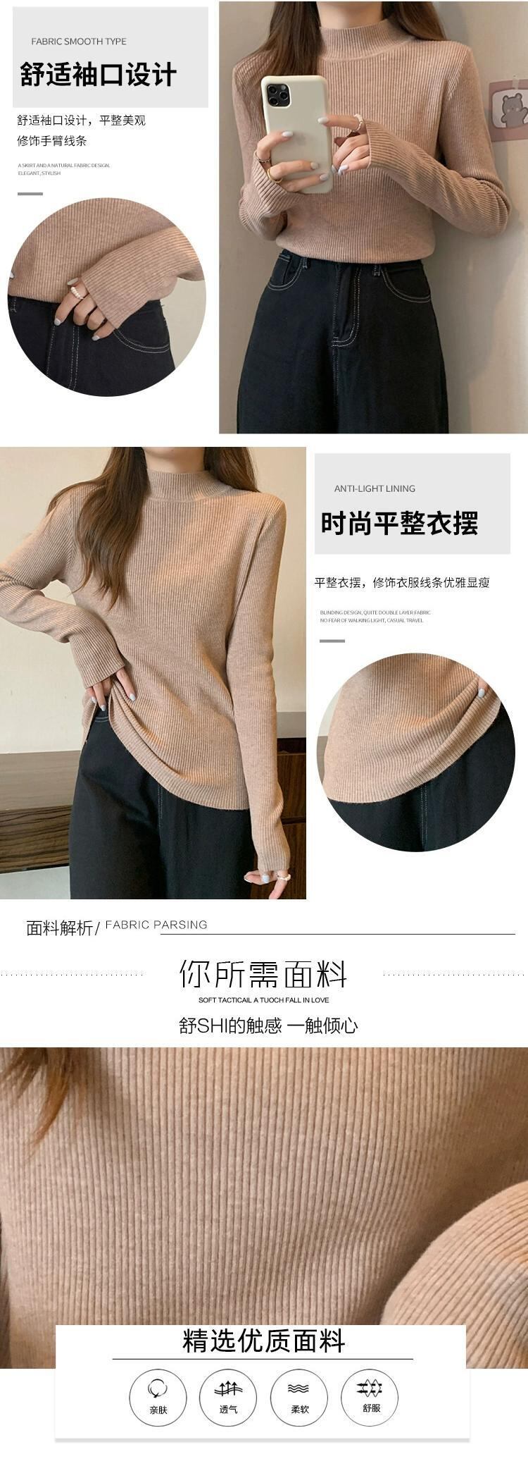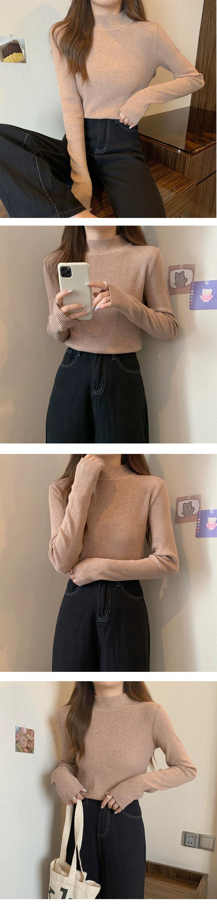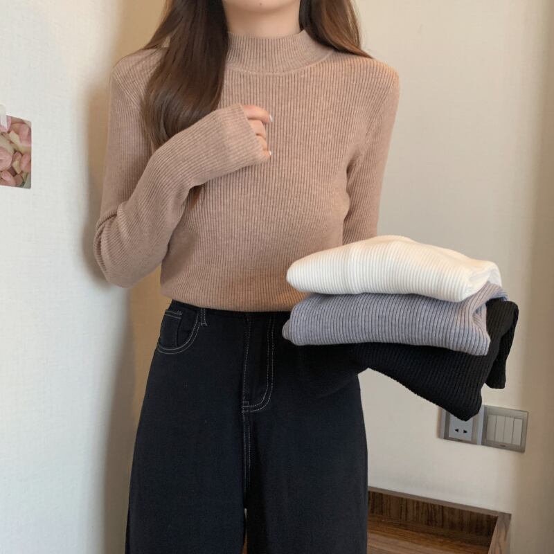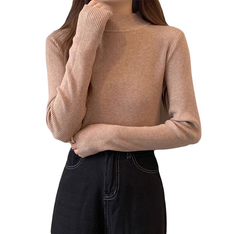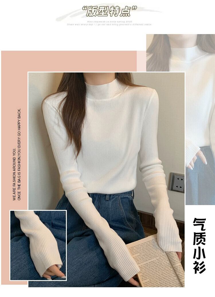 プラスサイズの女性のハーフタートルネックボトミングシャツ秋と冬の新スタイル 2023 ニットスタイルセーター無地トップトレンド 大きめサイズ オータム 秋物 ウィンター 冬物 ソリッドカラー 8884148795488529